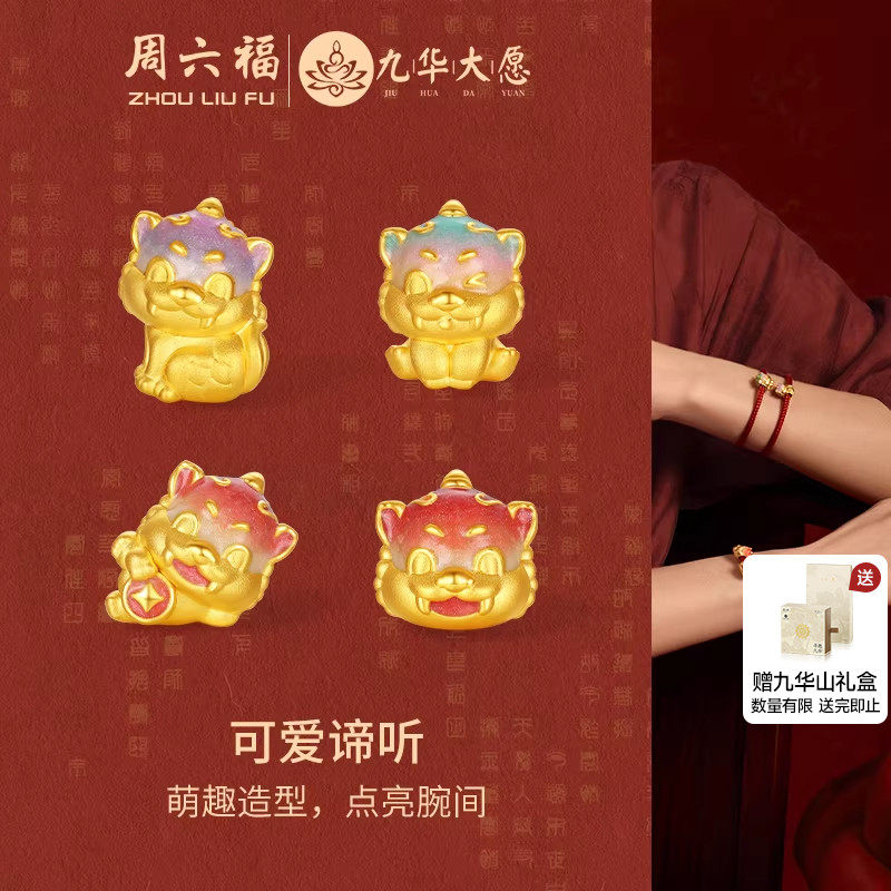 📚 周六福黄金转运珠5d硬金定价九华山系列可爱谛听路路通新年礼物
