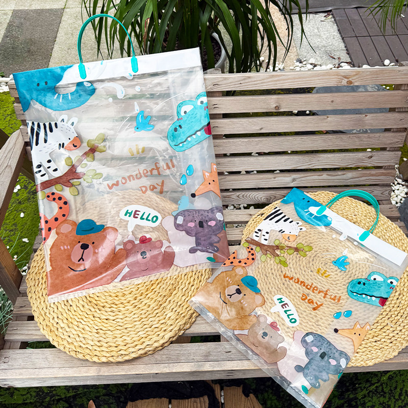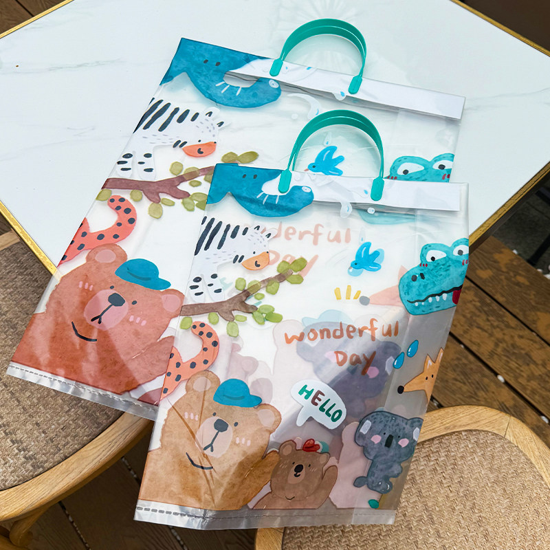 📚 动物王国加厚卡通礼品袋服装店手提袋童装购物袋大中小号手拎胶袋