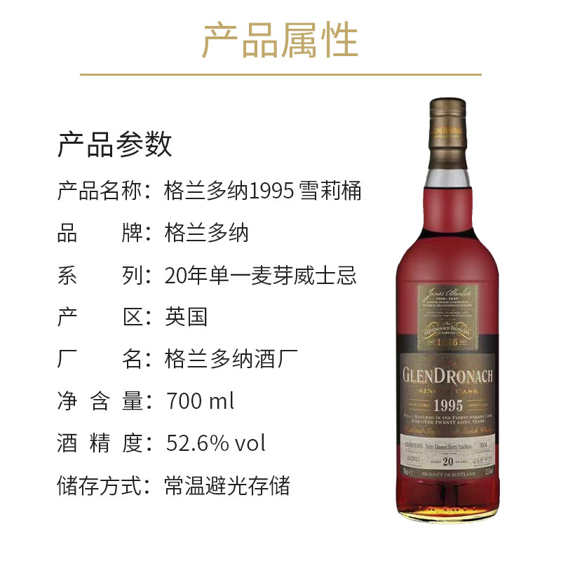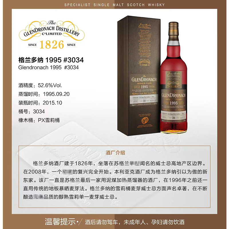 📚 格兰多纳 1995年3034桶PX雪莉桶52.6度单一麦芽威士忌Glendronach