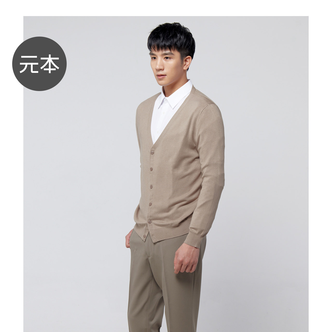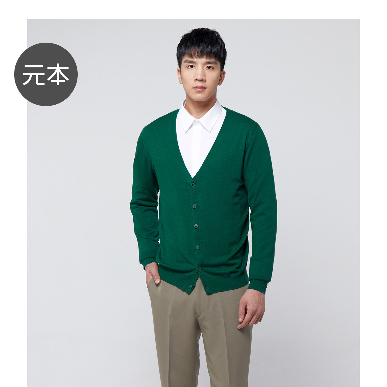 📚 元本秋季针织开衫男士针织衫毛衣V领修身潮学院风纯色通勤基础款