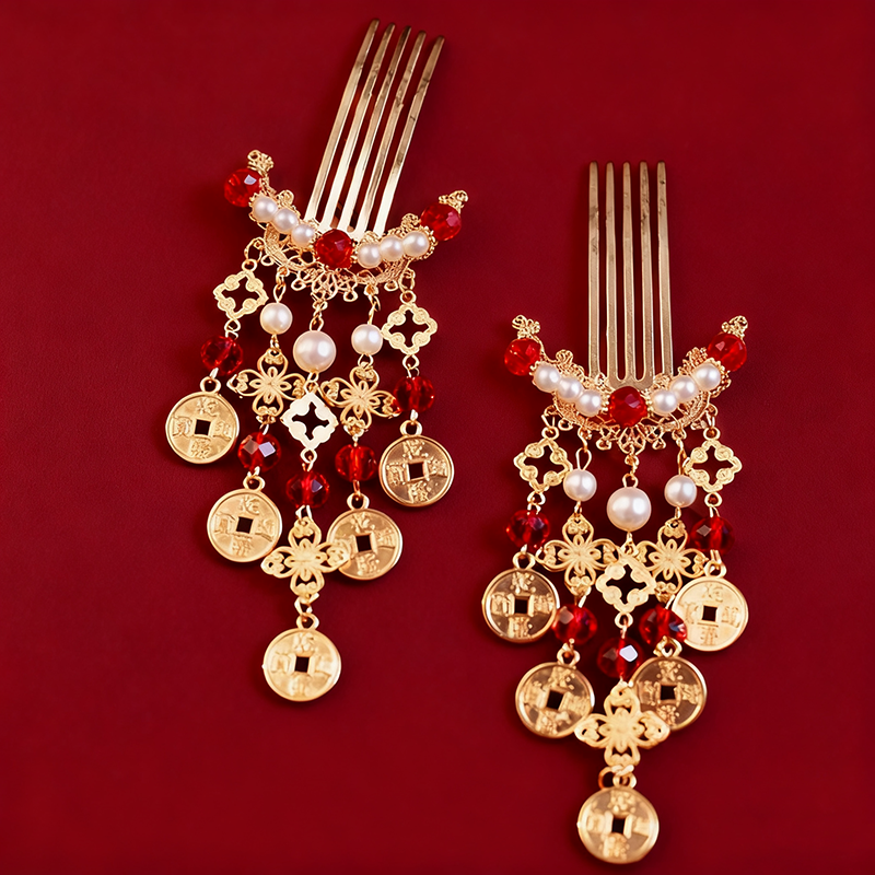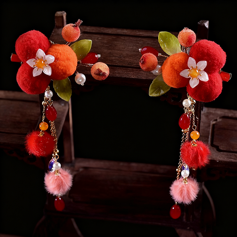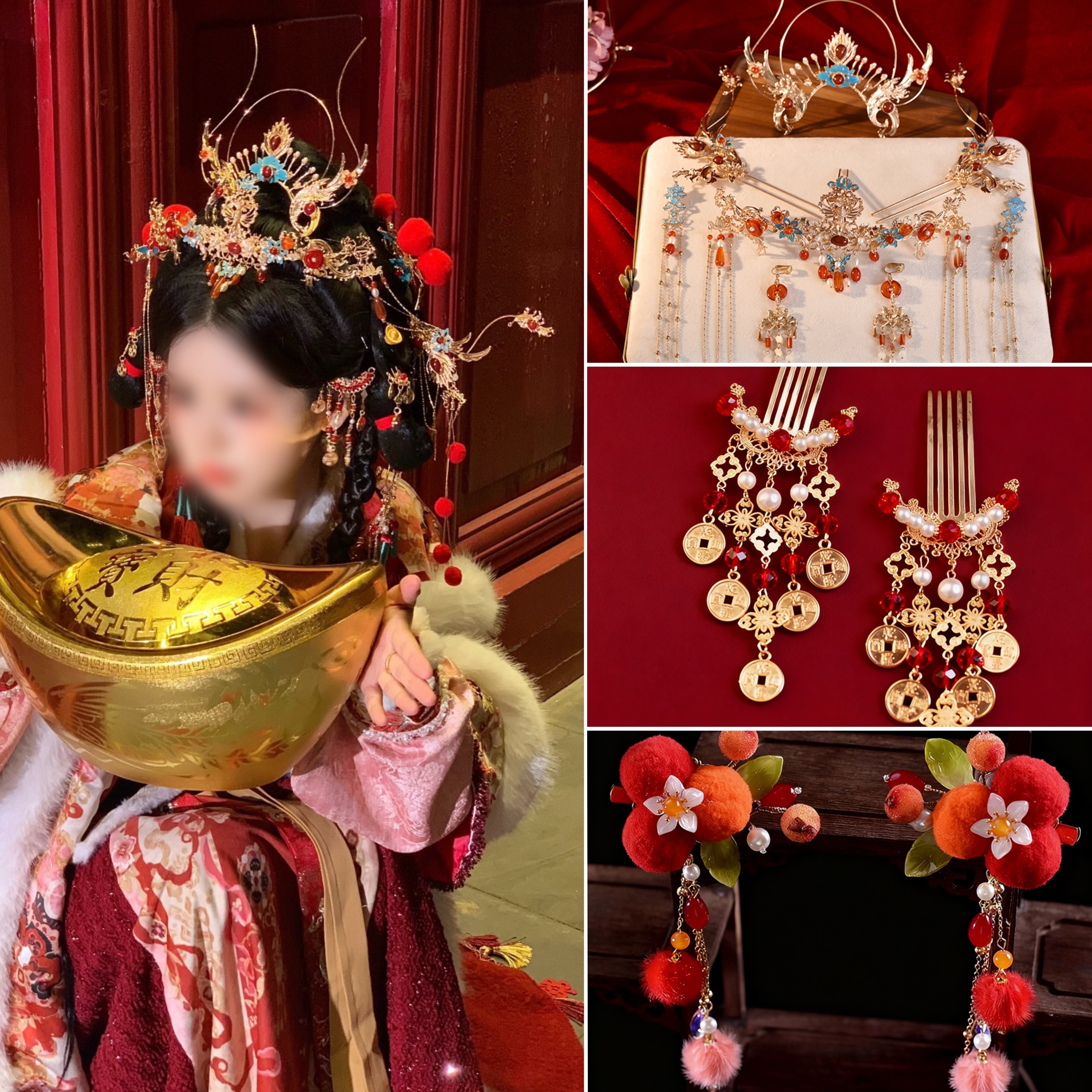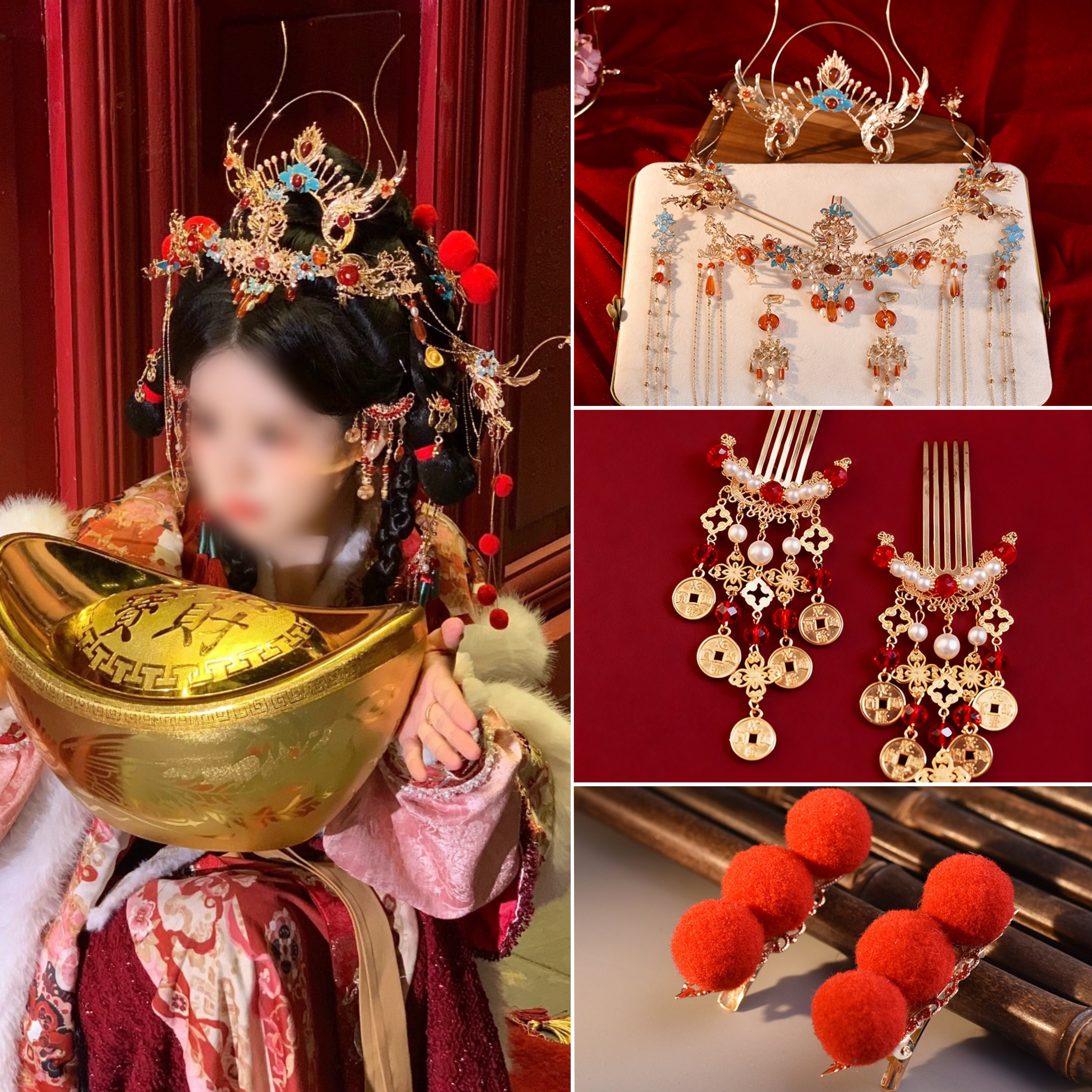 📚 新年头饰小财神红色明制发冠头饰古风宋中国风汉服毛球发冠发饰品