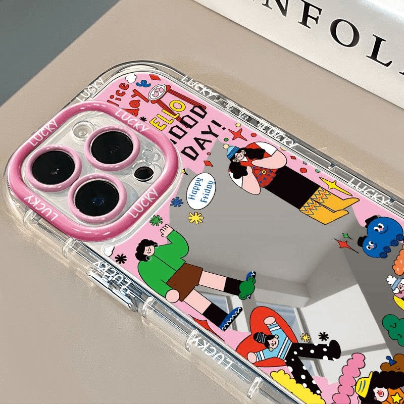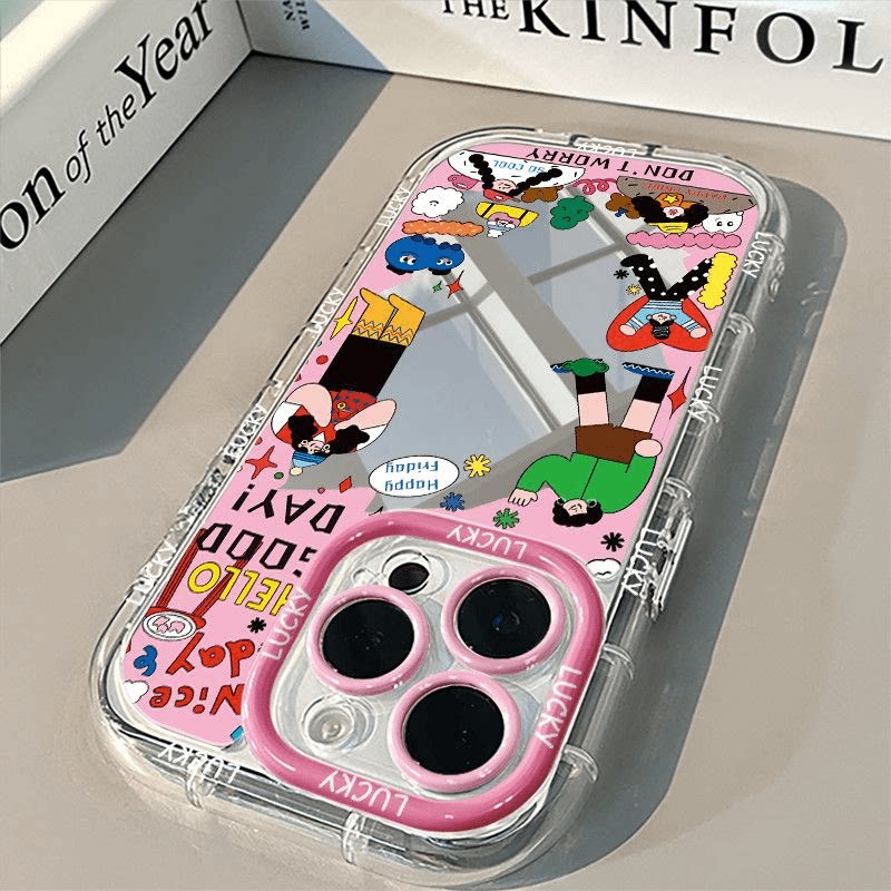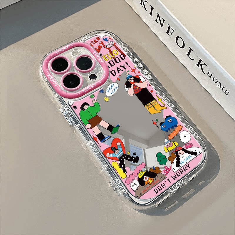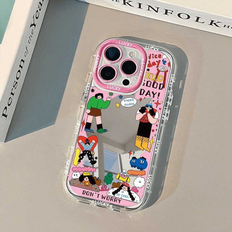 📚 今日份特开心ootd适用iPhone17/16promax个性涂鸦插画手机壳苹果15/14/13/12Pro镜面华为P60/70/80全包软壳女