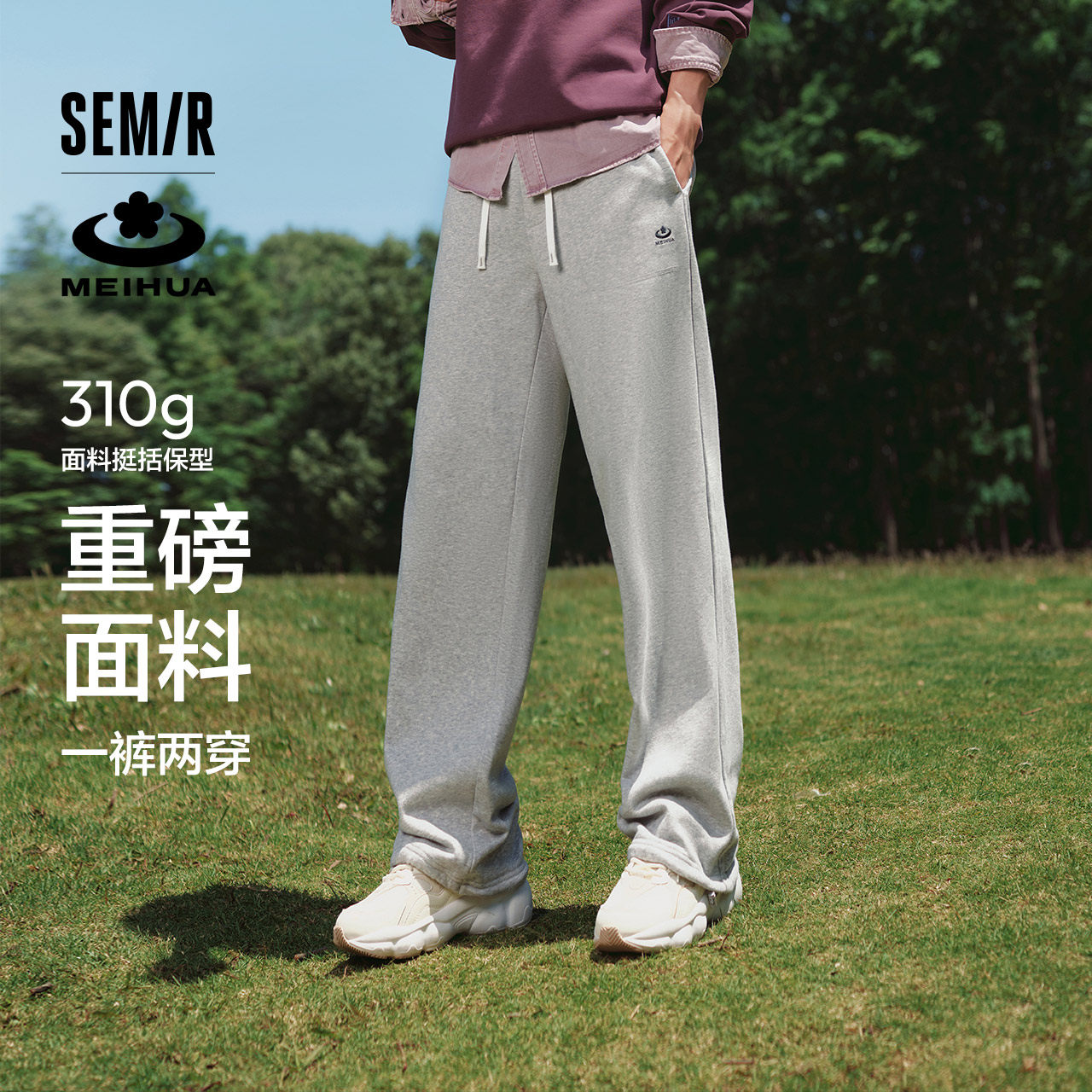 📚 森马梅花系列休闲裤男2025秋季宽松绣花校园运动长裤抽绳直筒卫裤