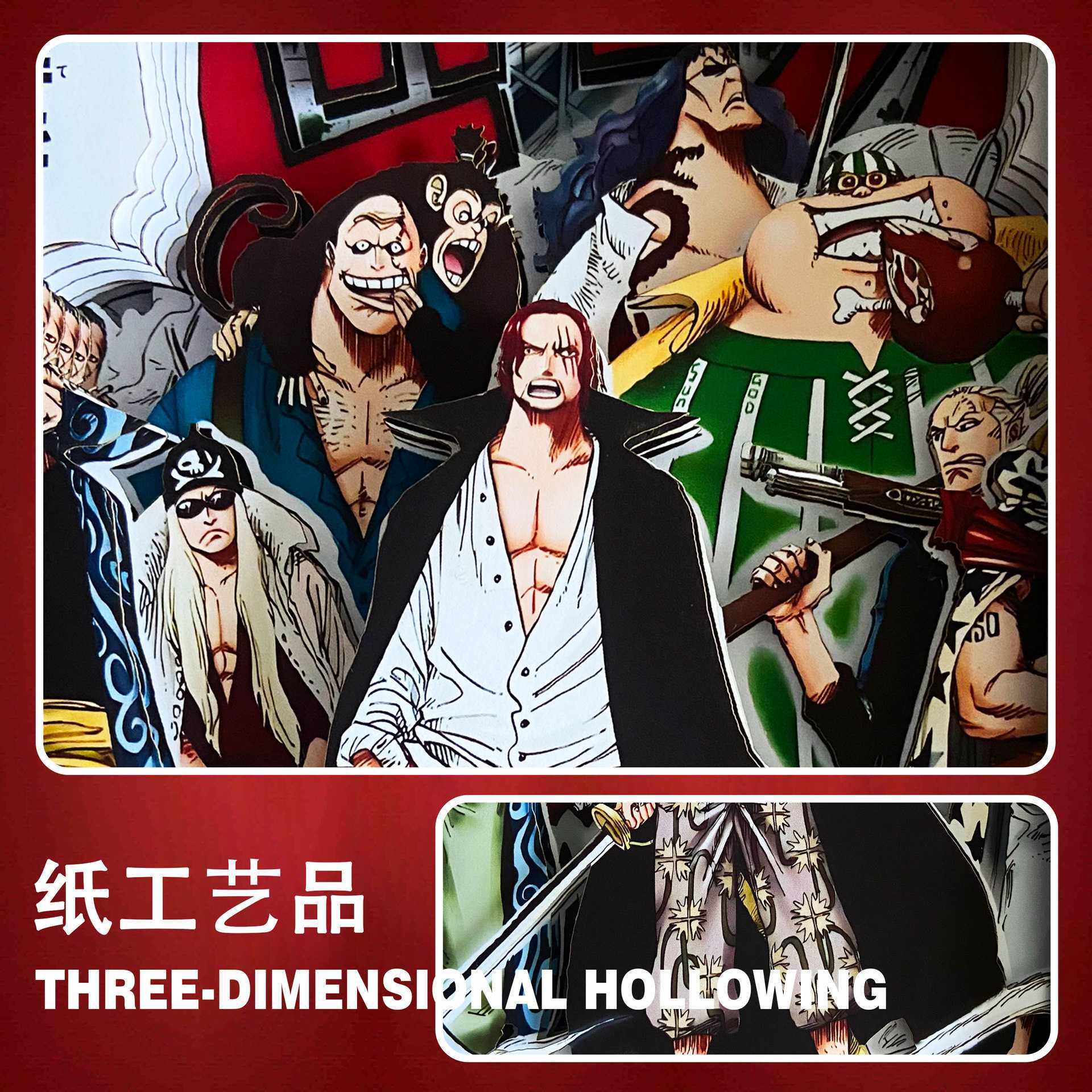 📚 【厂家直销】3D立体画相框动漫海贼团红发香克斯创意纸雕摆台