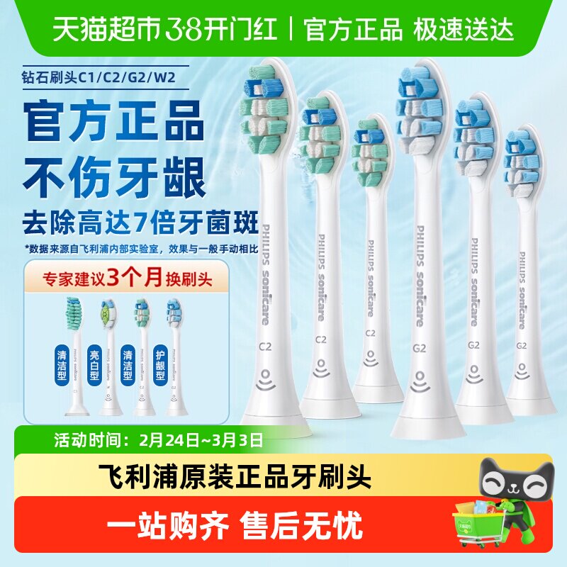 📚 飞利浦电动牙刷头HX6013/9023/9033替换HX3/6/8系钻3通用原装正品