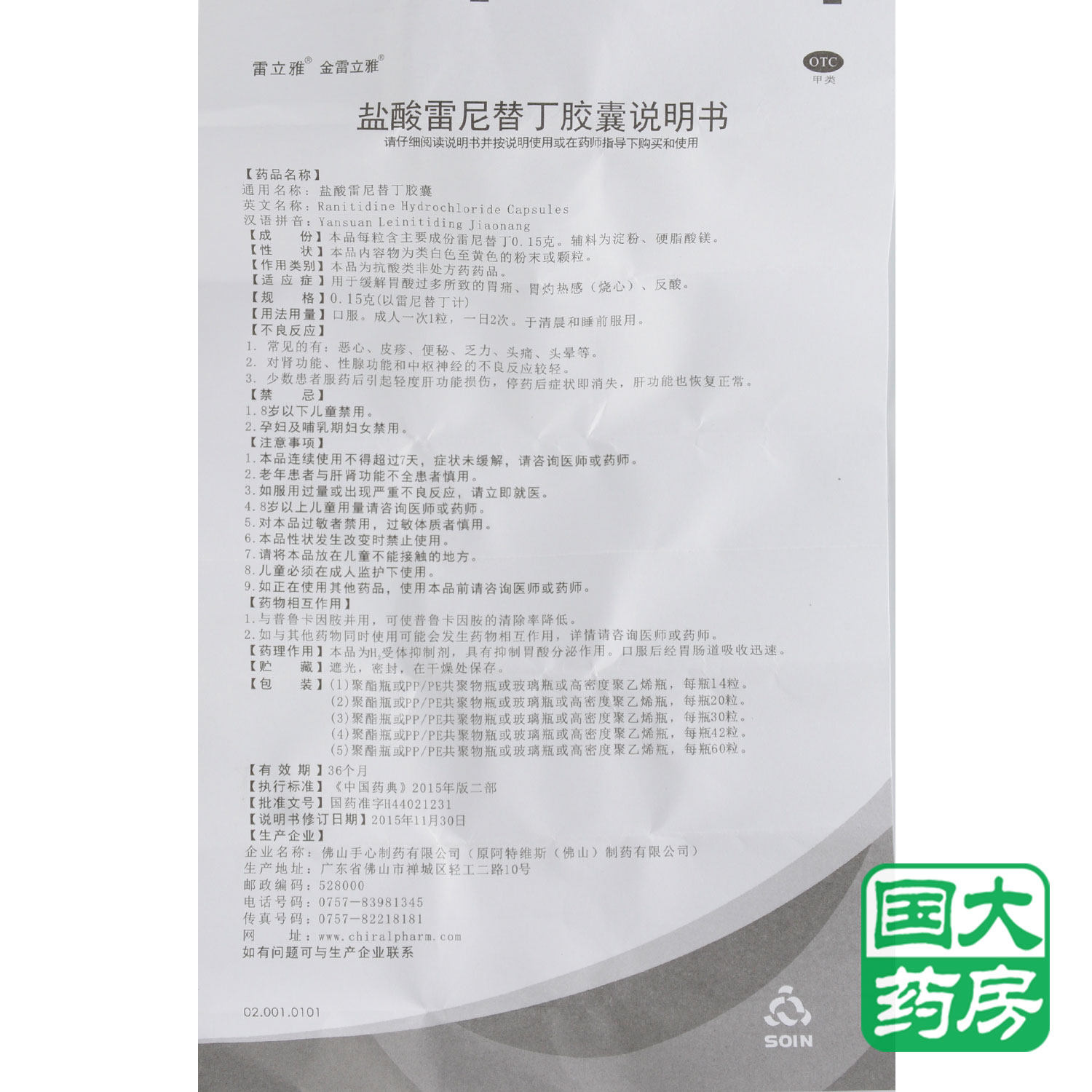 📚 金雷立雅盐酸雷尼替丁胶囊30粒正品缓解反酸胃酸过多胃痛胃灼热感