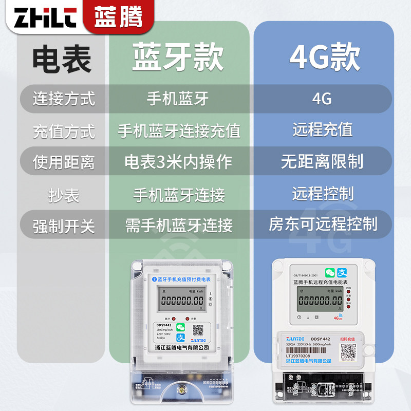 📚 蓝腾智能蓝牙预付费电能表水表单相4G远程抄表出租房扫码充值电表