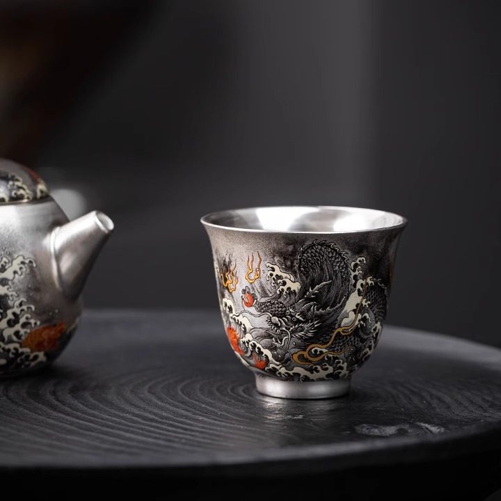 📚 茶器鱼化墨龙陶瓷鎏银茶壶功夫茶具家用高档复古中式泡茶器送礼