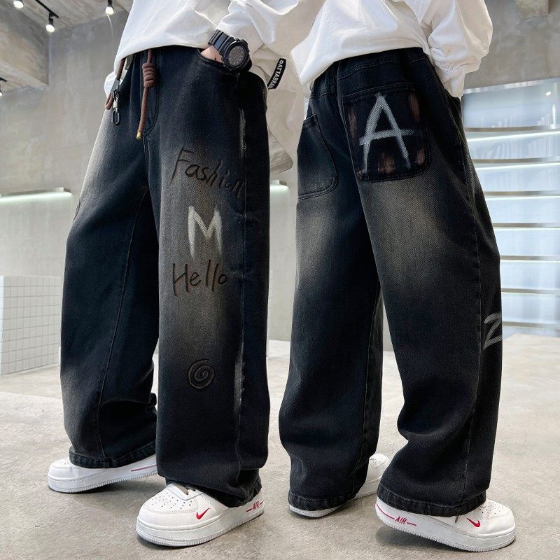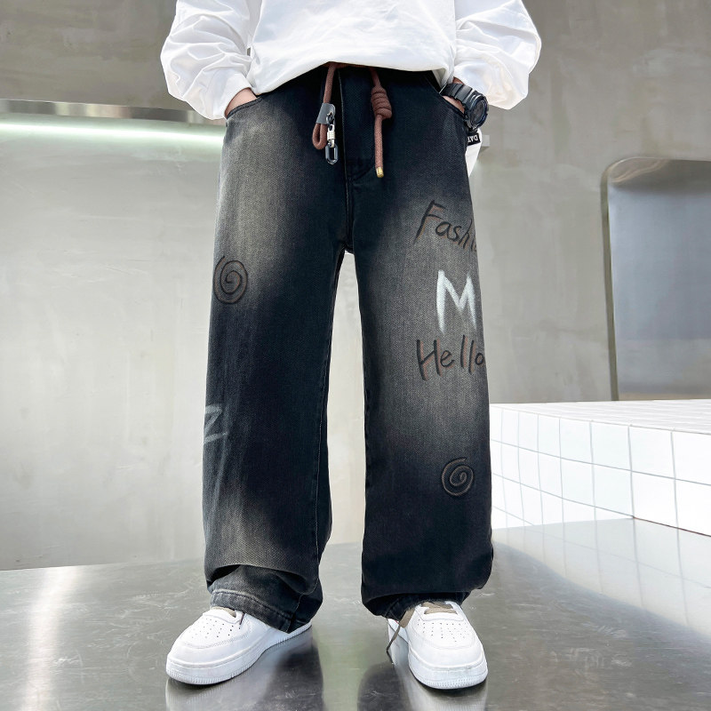 📚 男童裤子冬季2025新款中大童潮酷男孩加厚直筒裤儿童春秋牛仔裤潮