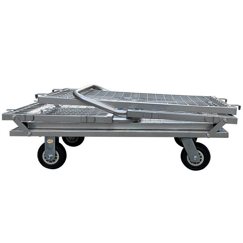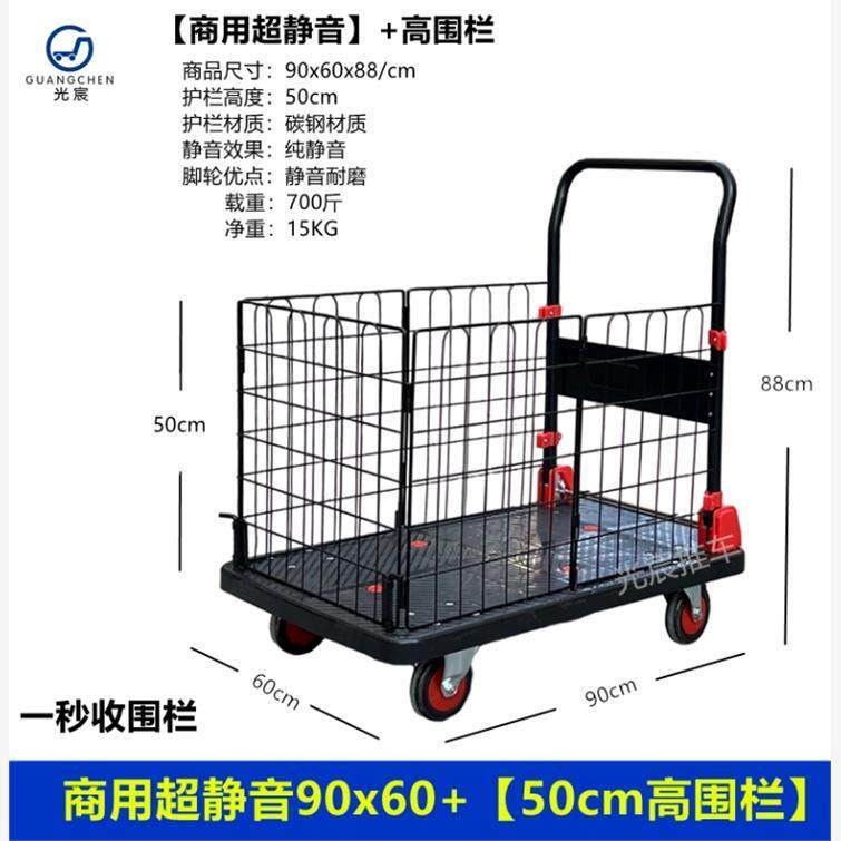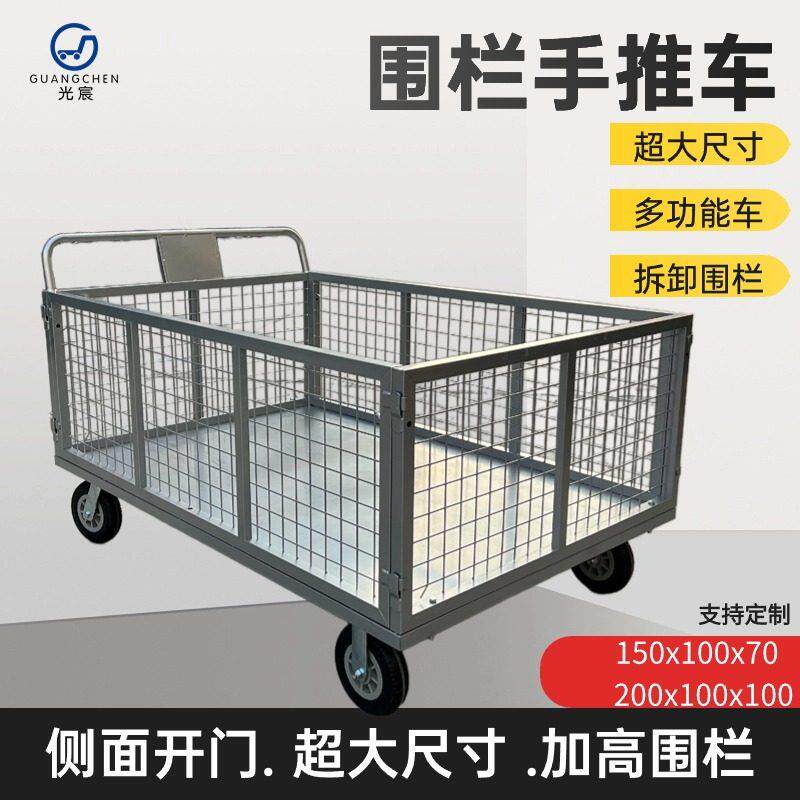 📚 围栏平板手推车拉货搬运周转推车仓储物流笼车快递折叠网格小推车