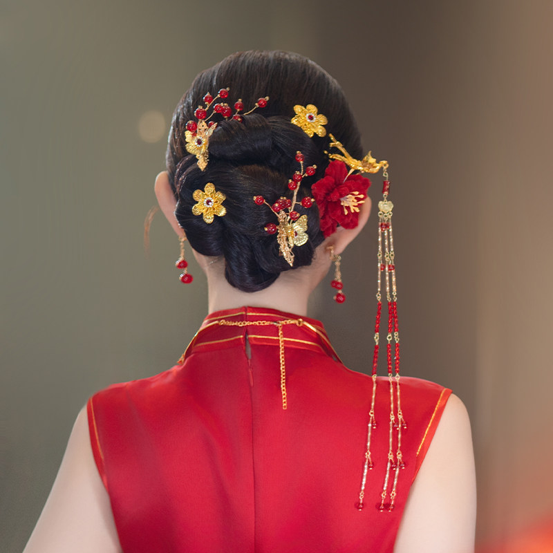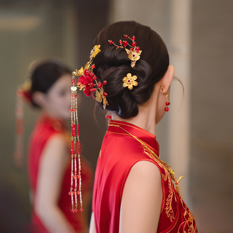 💃新娘新风尚!2025绝美红色系绒花敬酒服发饰,惊艳你的婚礼✨
