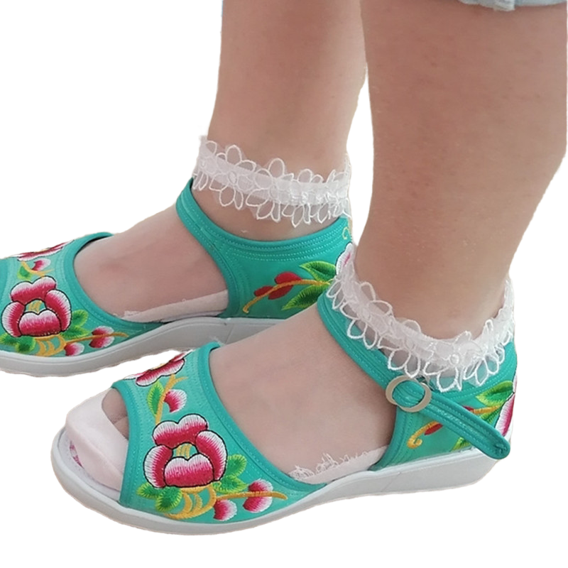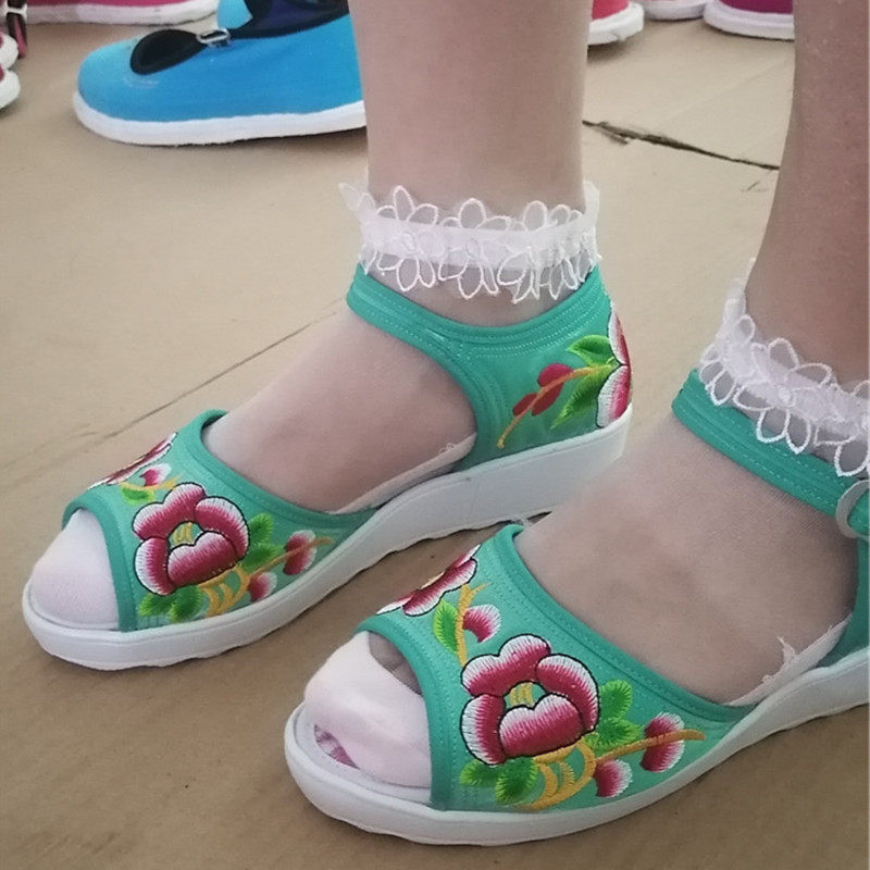 📚 云南坡跟高跟鞋凉鞋女夏季新品韩版鱼嘴一字扣松糕厚底罗马布鞋子