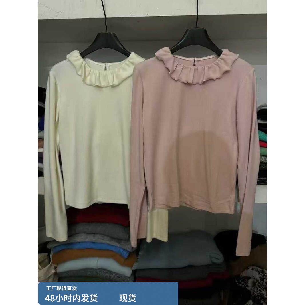 📚 韩系娃娃领荷叶边长袖T恤女秋冬磨毛修身显瘦内搭打底衫别致上衣