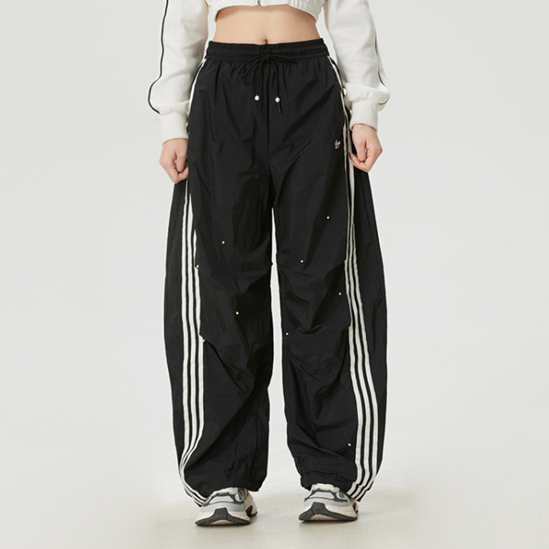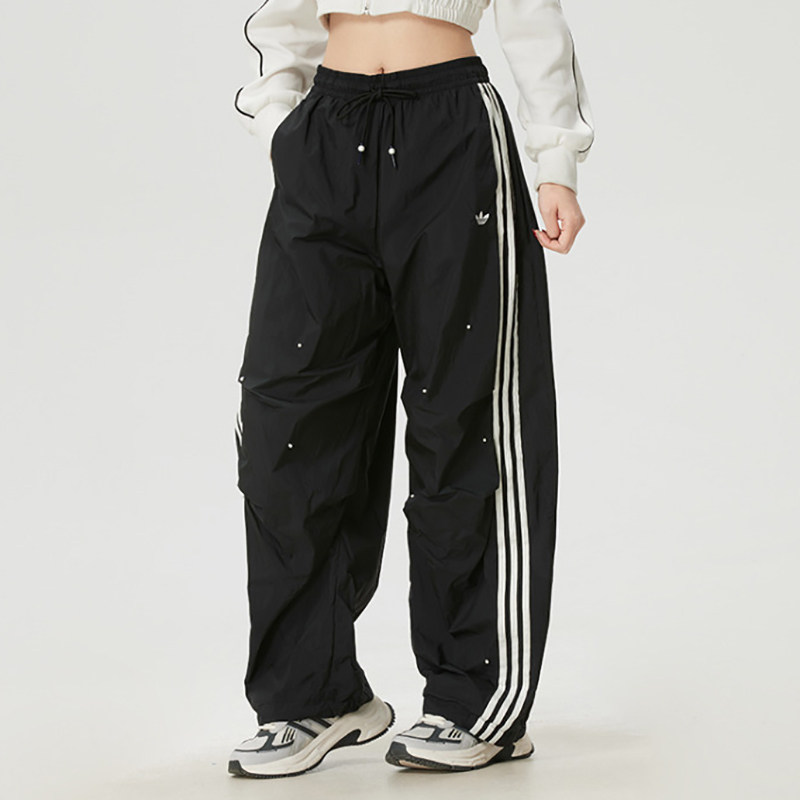 📚 阿迪达斯三叶草女裤2026春三条纹闪钻宽松伞裤阔腿直筒长裤KS2865