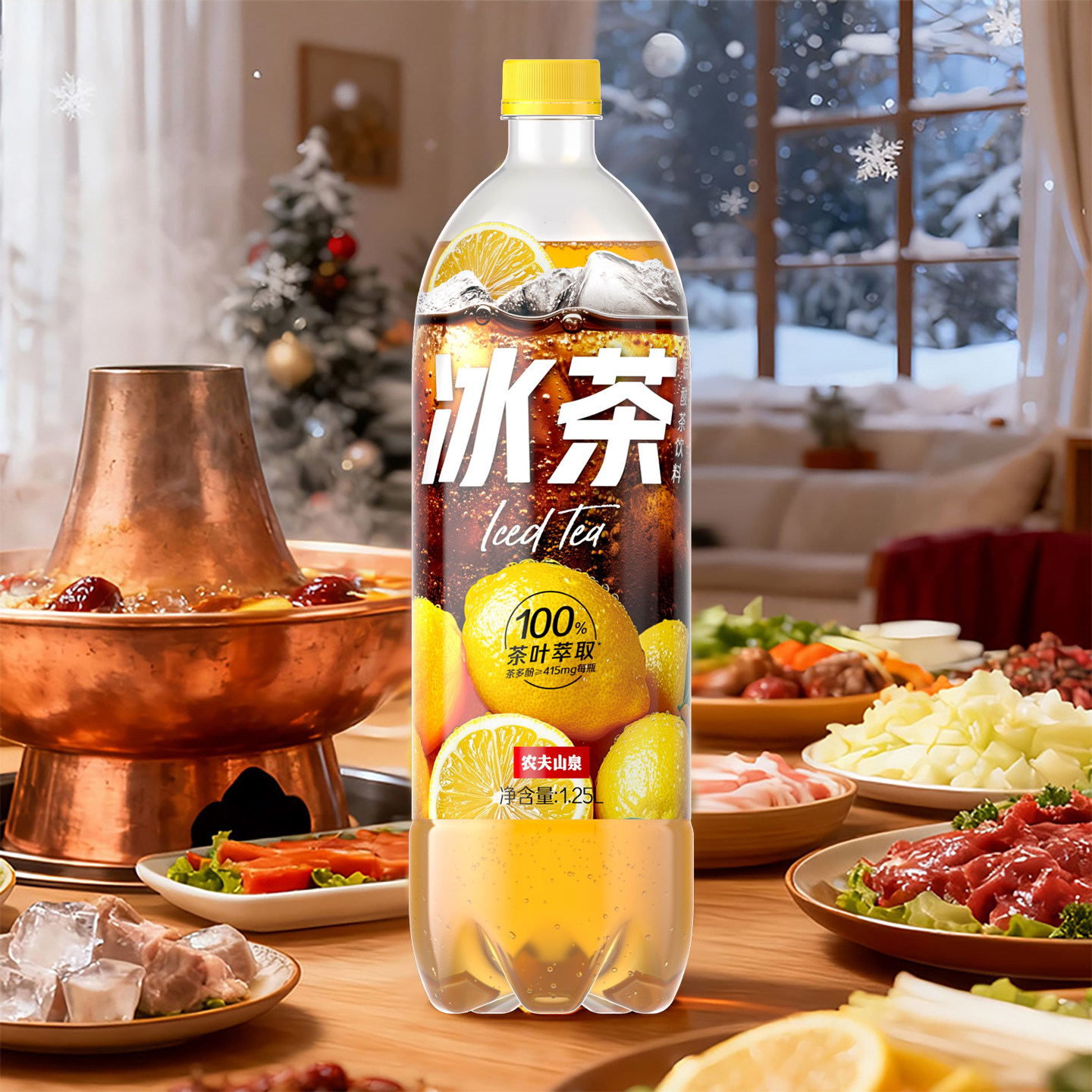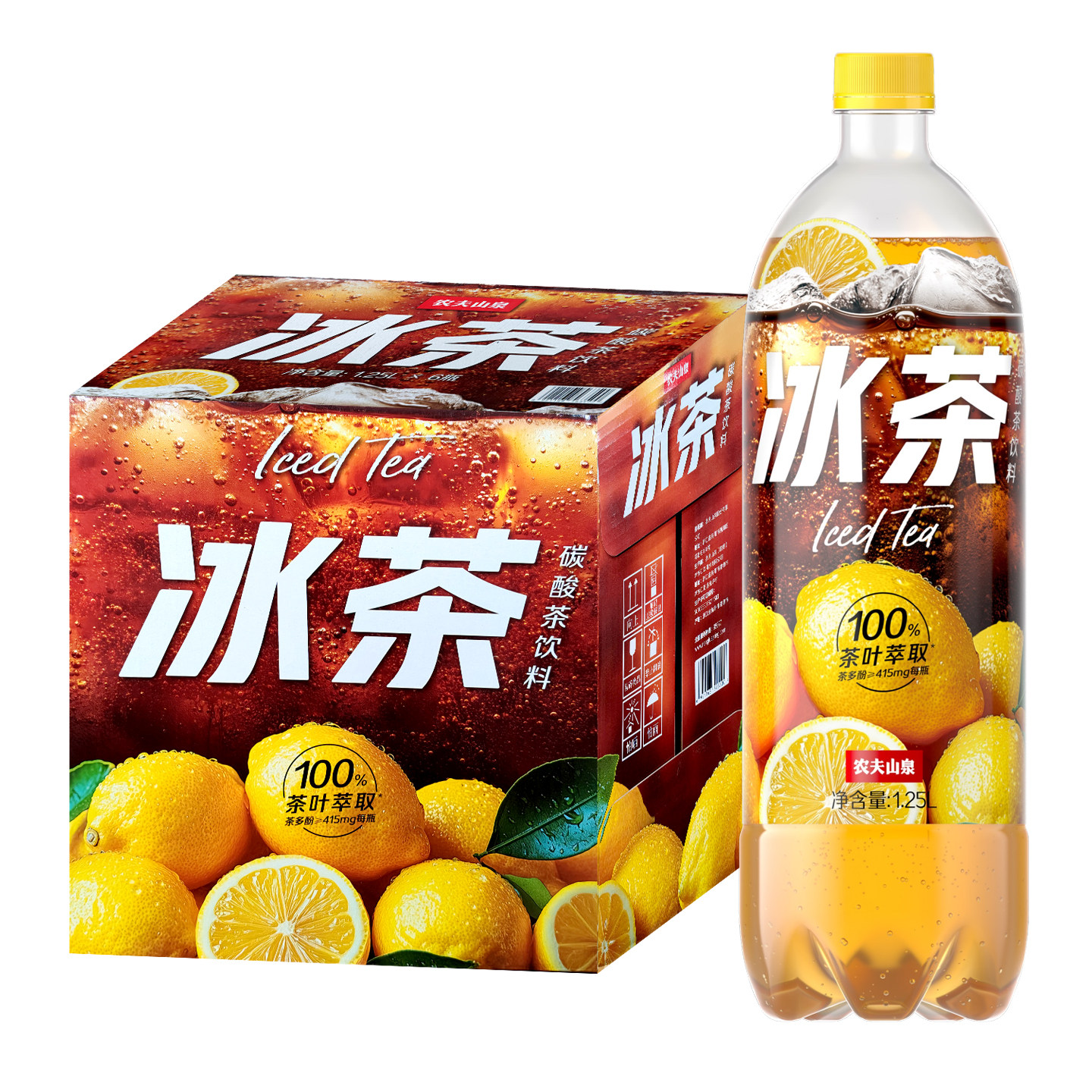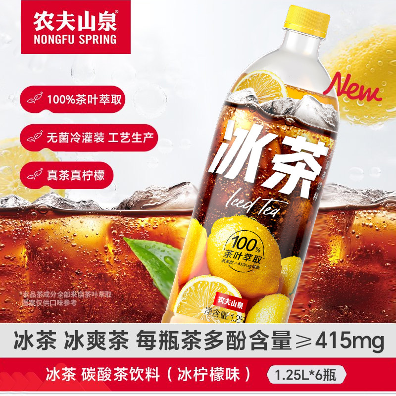 📚 农夫山泉冰茶1.25L*6瓶整箱柠檬红茶味可乐汽水碳酸茶饮料饮品