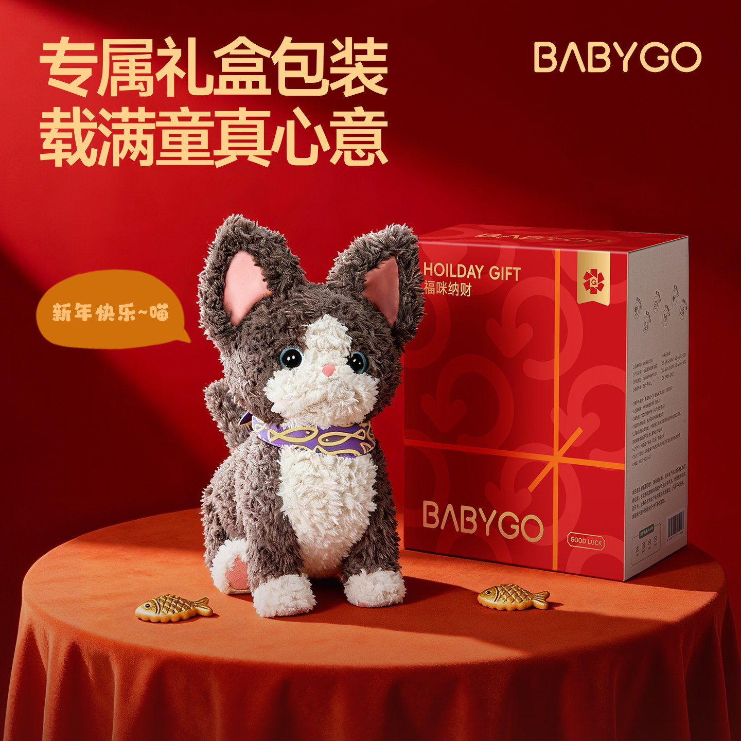 📚 BABYGO德文猫咪玩偶儿童电动仿真毛绒玩具公仔宝宝周岁新年礼物