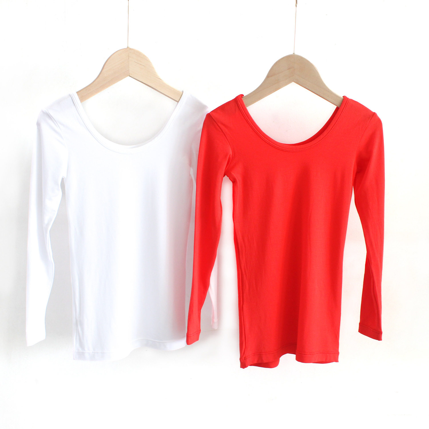 📚 儿童u领打底女童打底衫大领口纯棉跳舞秋衣宝宝汉服内搭上衣白色