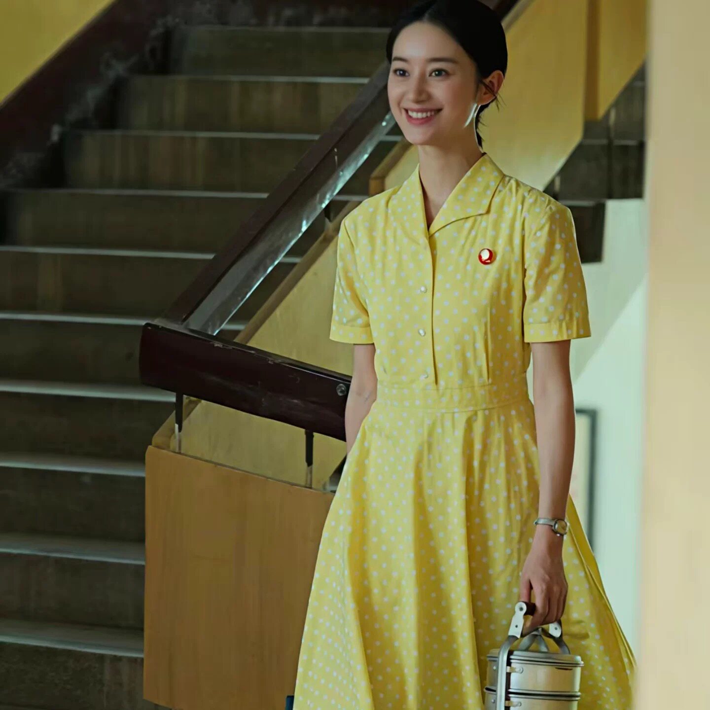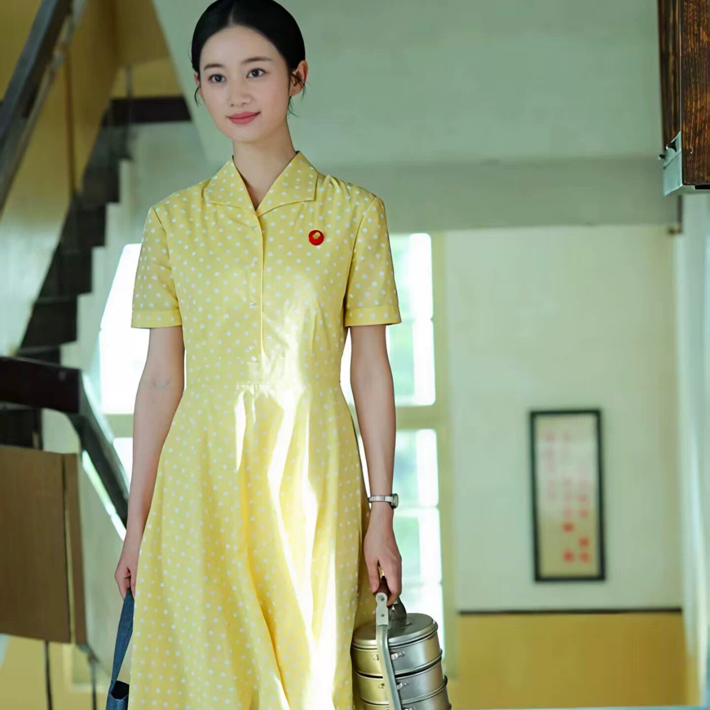 📚 方穆静同款连衣裙纯真年代的爱情郭晓婷黄色波点穿搭中长衬衫裙子