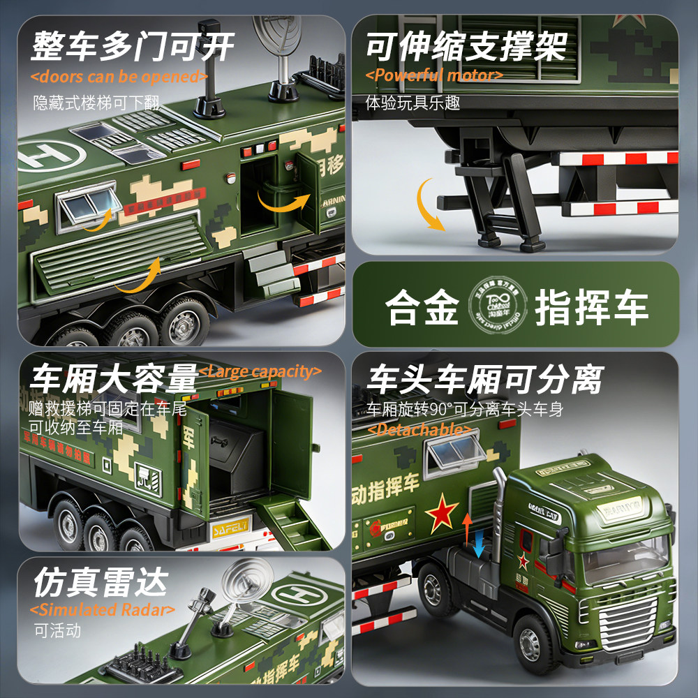 📚 加长合金军事指挥车玩具男孩仿真警车运输车儿童装甲车特警车模型