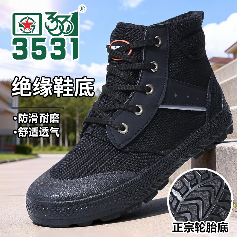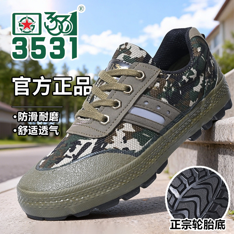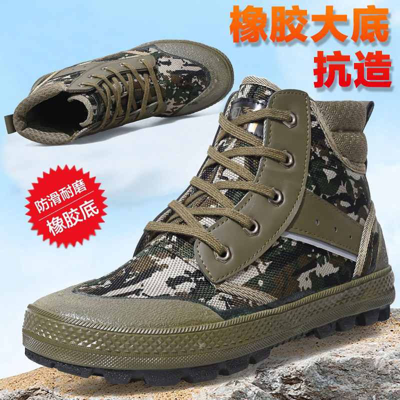 📚 3531正品高帮透气户外迷彩帆布工装鞋防水耐磨轮胎底胶鞋解放鞋男