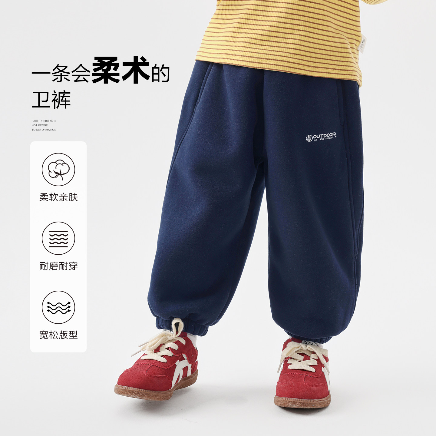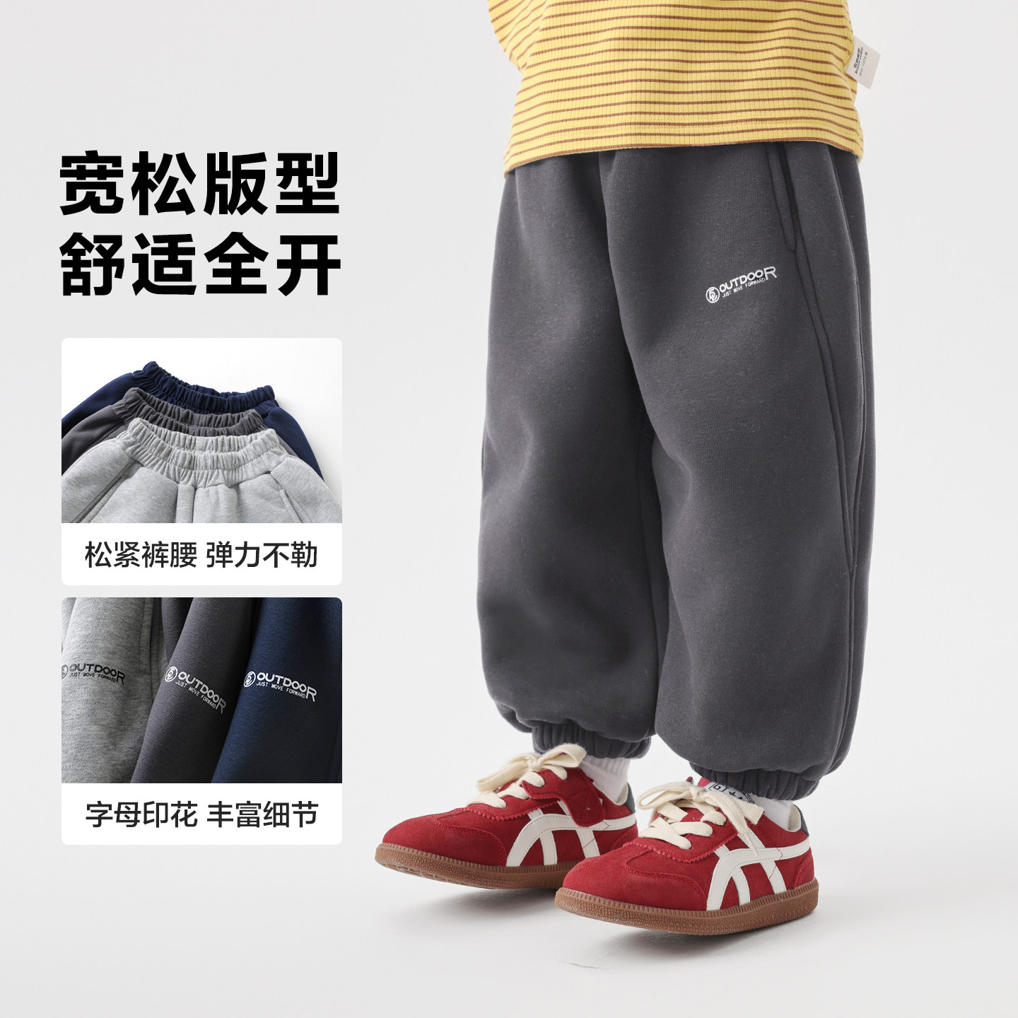 📚 右欧儿童加绒加厚运动裤男童女童纯色保暖束脚裤子秋冬季新款童装