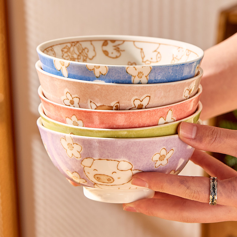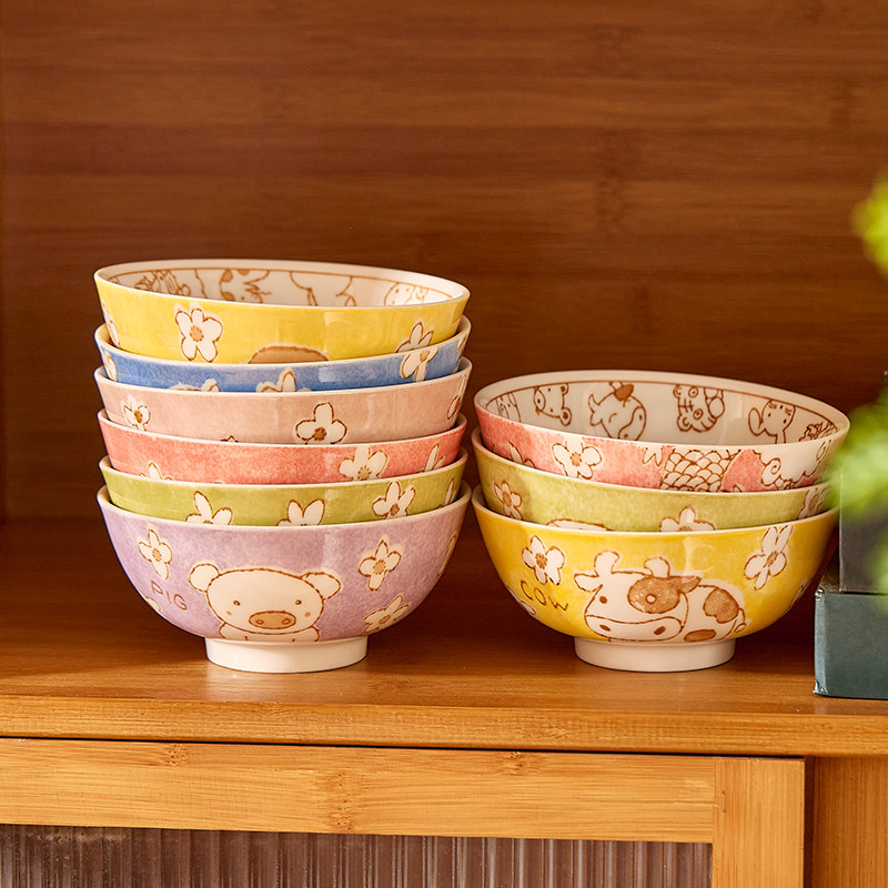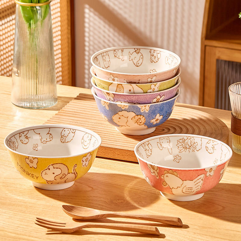 📚 陶瓷釉下彩生肖碗单个分餐碗家用卡通创意可爱儿童吃饭小米饭碗