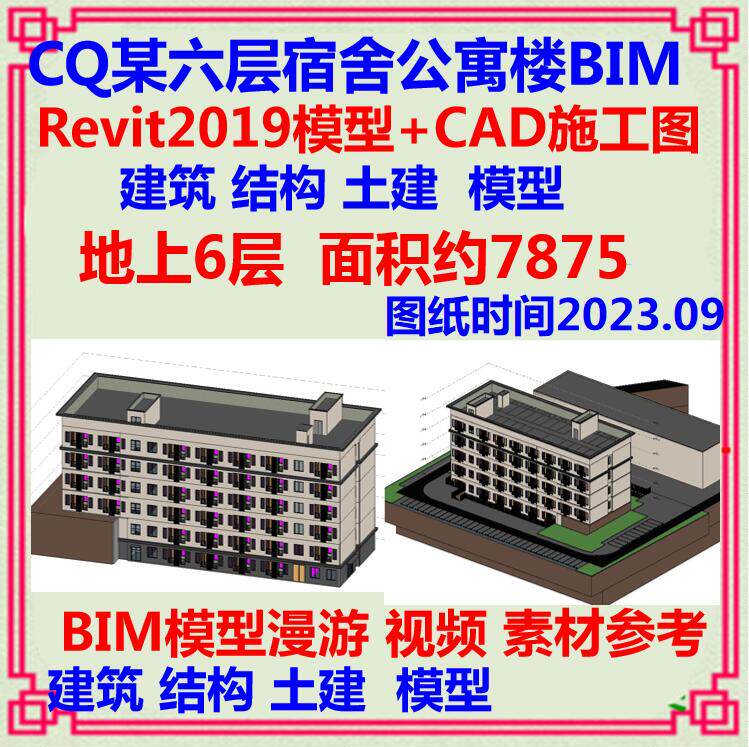 📚 学生宿舍楼公寓三维BIM模型Revit模型设计CAD施工图 土建水电