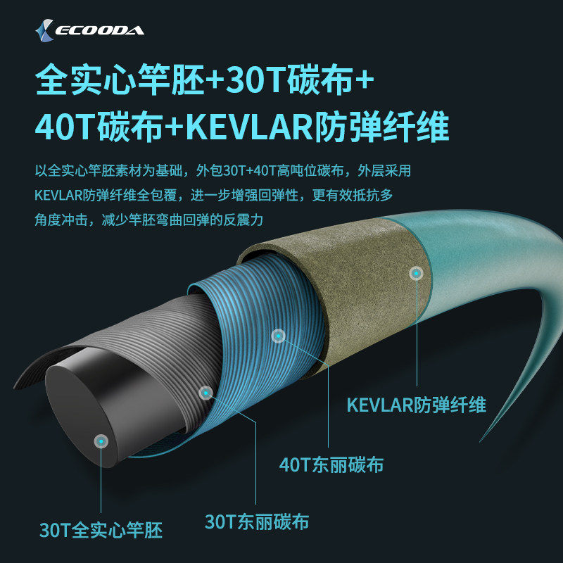 📚 ECOODA伊酷达青蓝二代轻型铁板竿实心海钓鱼竿近海船钓竿海杆裸竿