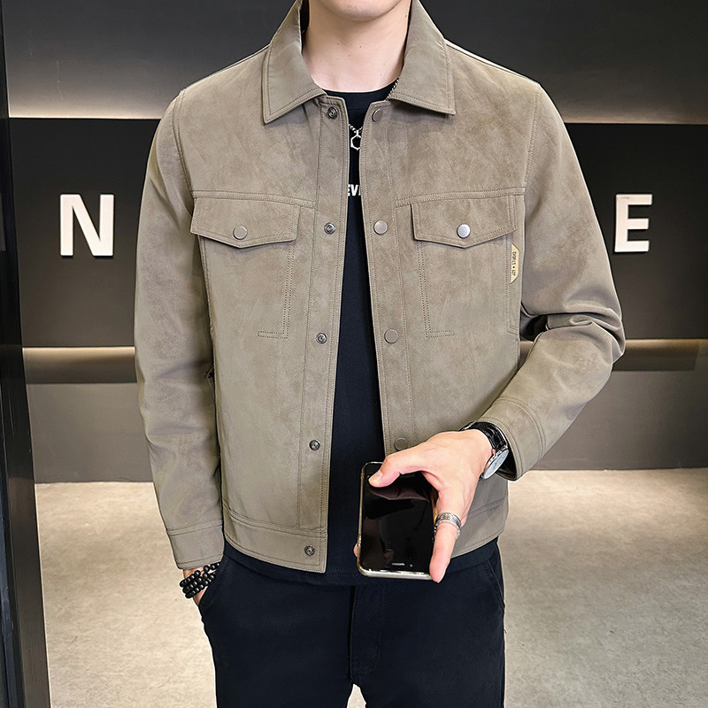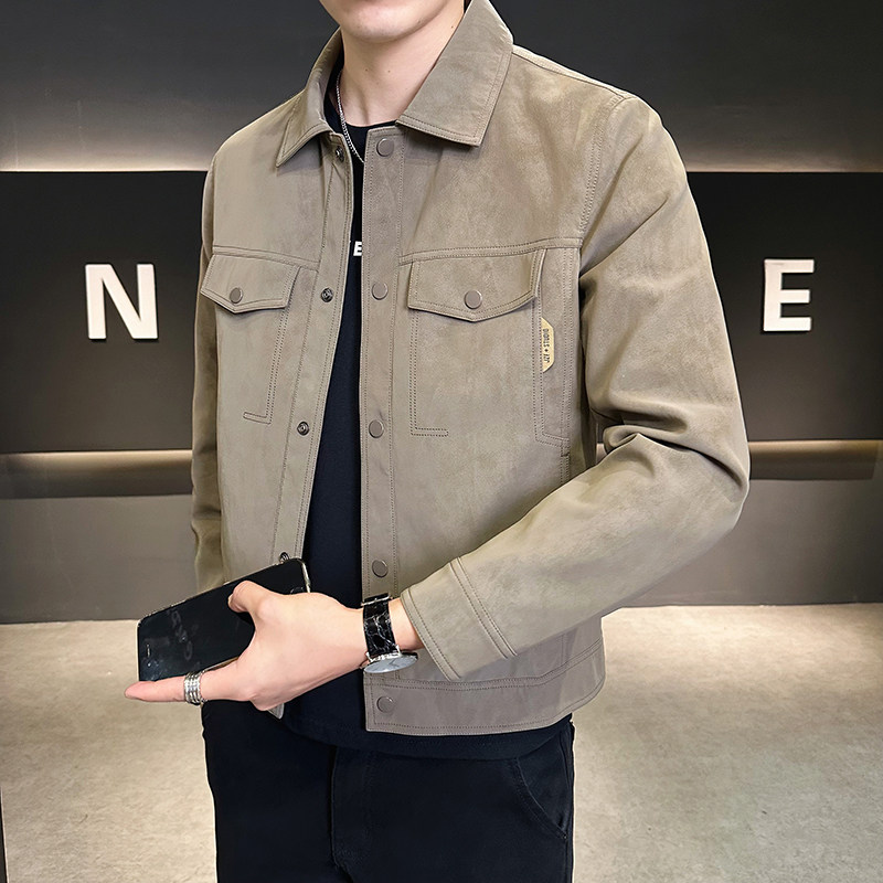 📚 麂皮外套男春秋2026新款高级感潮牌翻领衣服痞帅潮流修身男装夹克