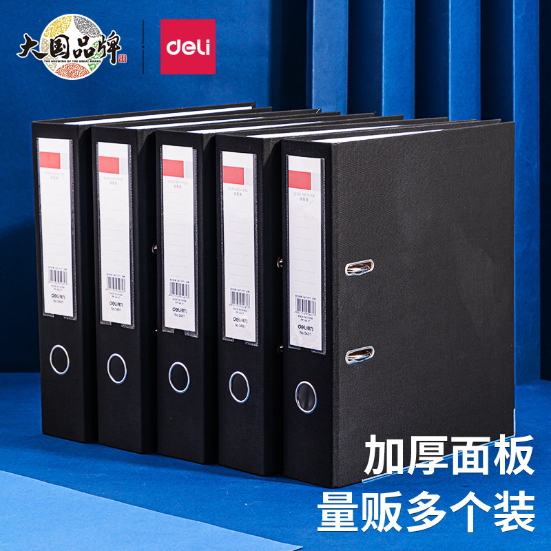 📚 得力2寸大文件夹经济型快劳夹a4办公用品文件活页夹插页票据双孔3寸资料册档案夹塑料黑色两孔打孔多层收纳盒