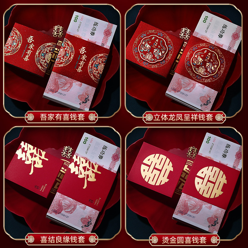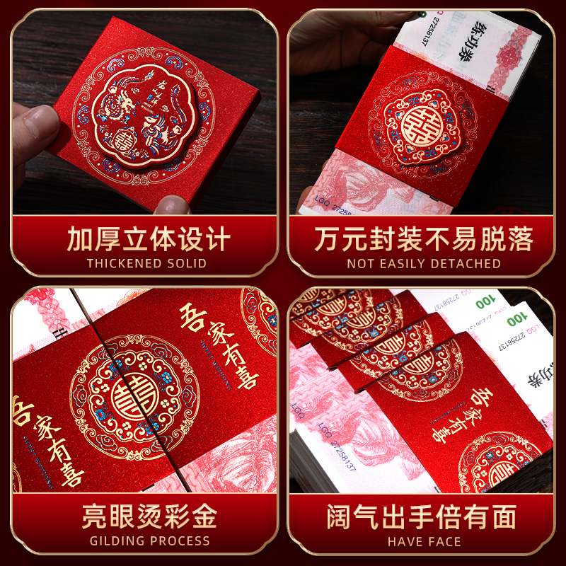 📚 订婚彩礼捆钱套红包封钱套喜字封条结婚专用一万元喜钱带2026新款