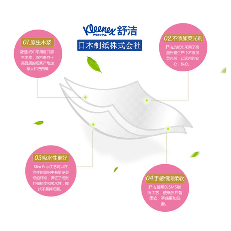 📚 日本原装舒洁Kleenex细滑柔润系列纸巾抽纸*柔软呵护180抽*5盒