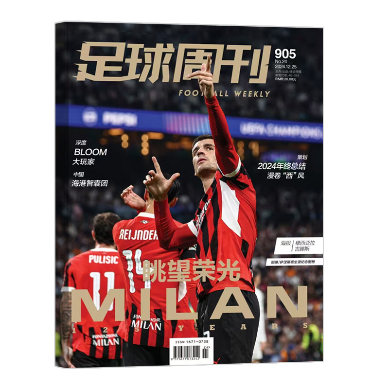 📚 足球周刊 2024年905期AC米兰封面 赠安德烈斯·伊涅斯塔 纪念图册+穆西亚拉/吉滕斯海报
