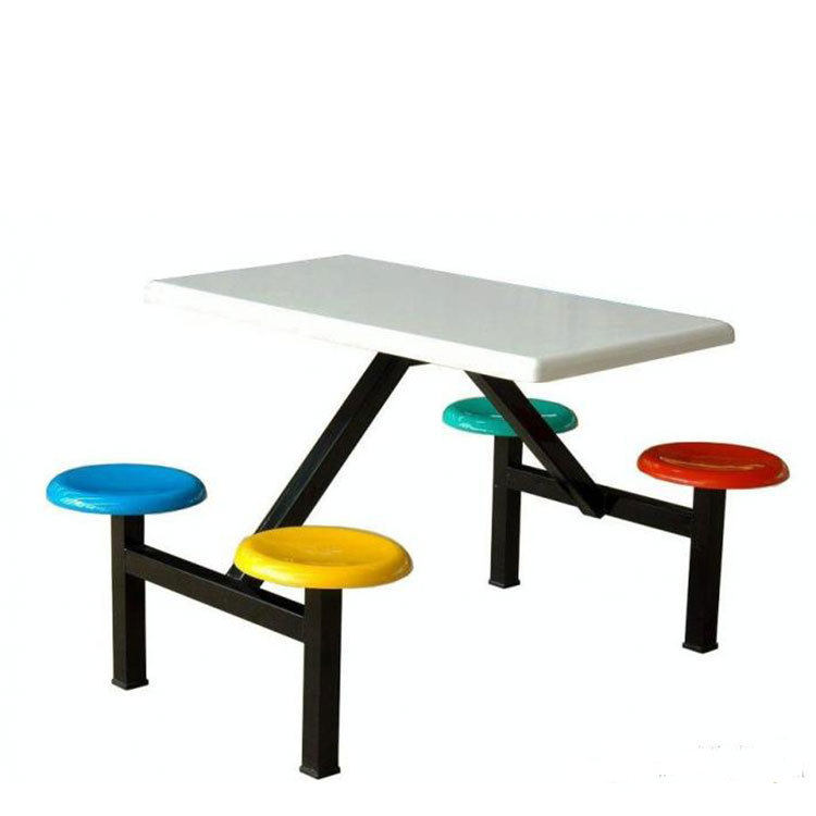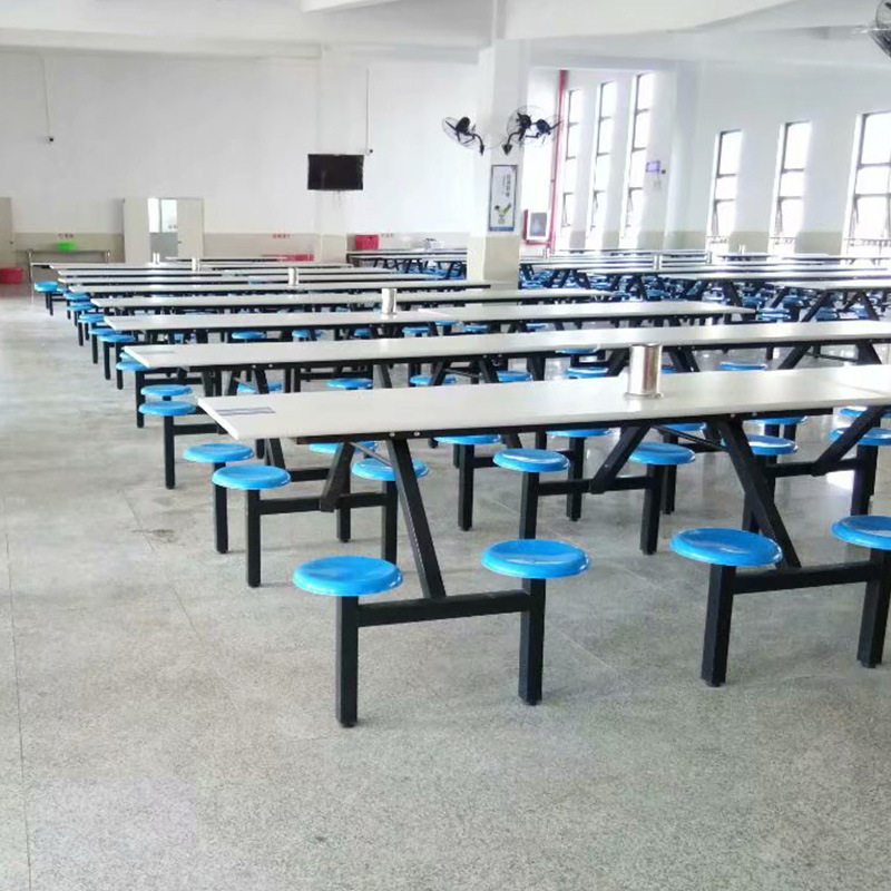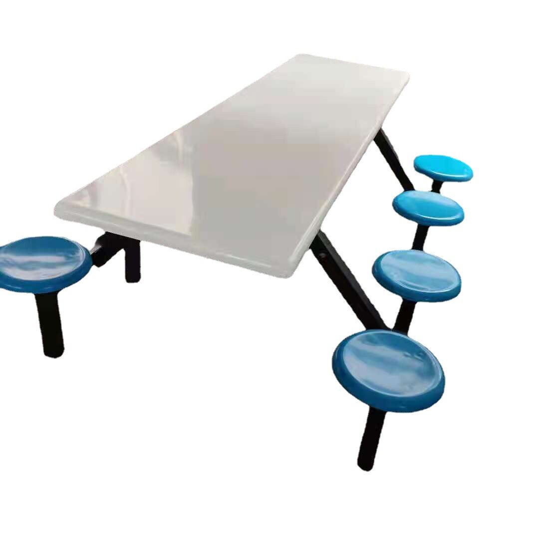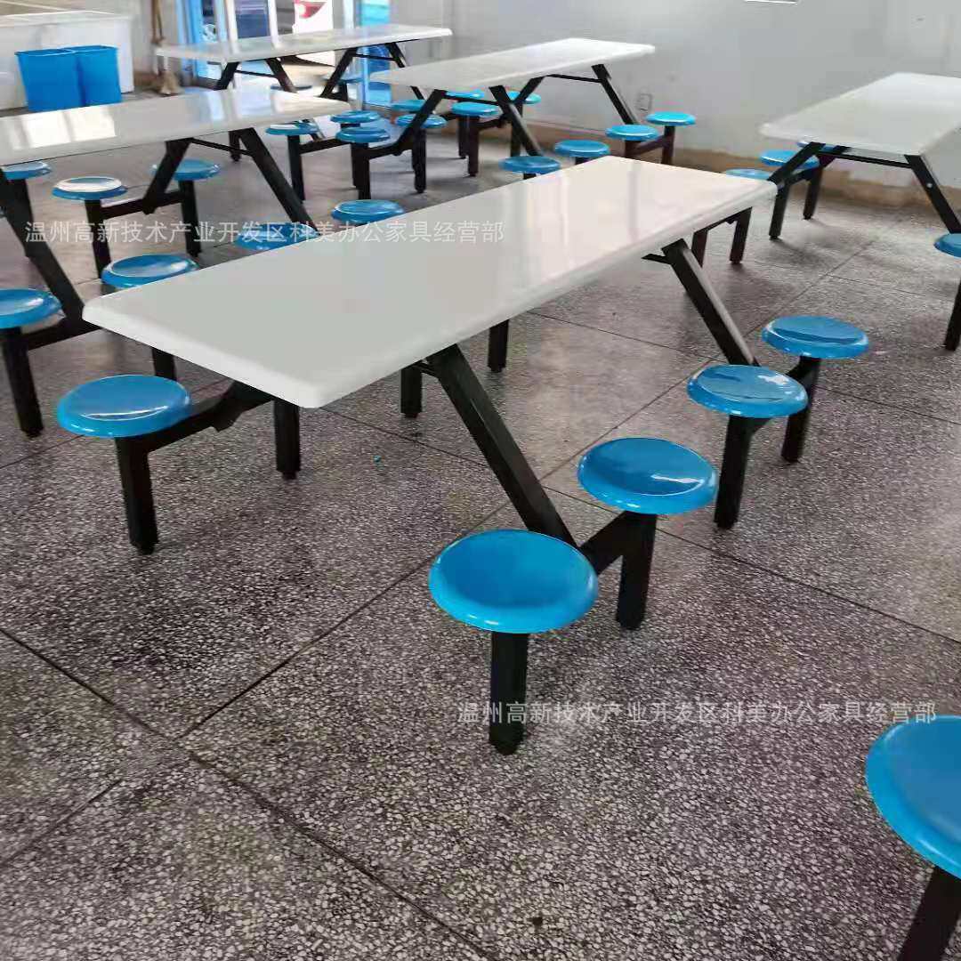 📚 食堂餐桌四人八人位员工连体玻璃钢桌面圆凳工厂学校学生方管餐桌