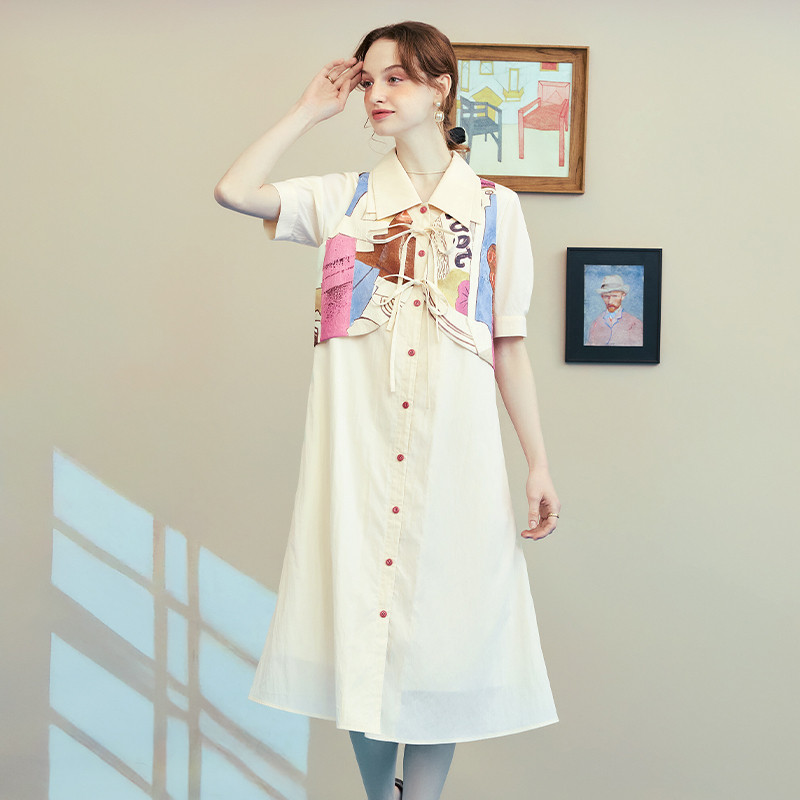 📚 两三事晨昏画意复古印花布拼接假两件连衣裙长裙150