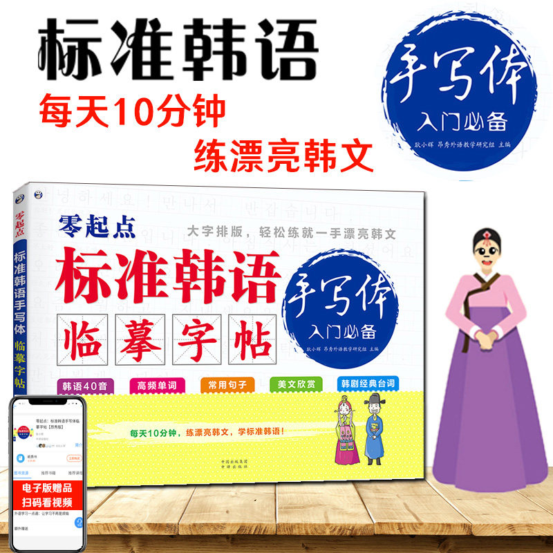 📚 零起点标准韩语手写体临摹字帖 韩文练字 韩语单词 韩语字帖手写体 大学生韩语自学基础入门字体练习 韩语自学入门教材 韩国