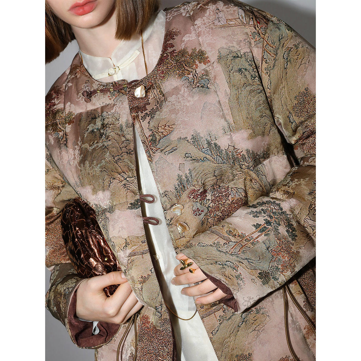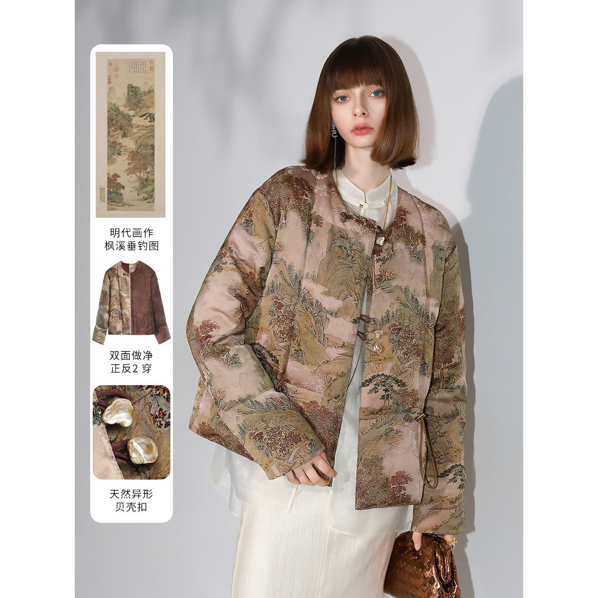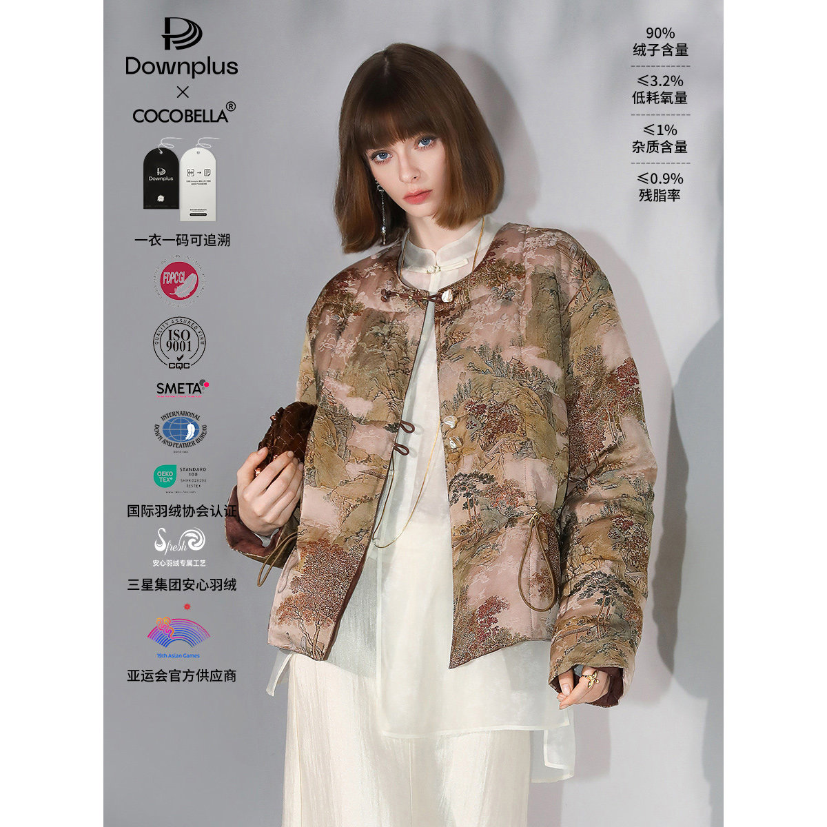 📚 【折扣季】COCOBELLA双面穿国风100%人丝提花新国标羽绒服DC3026