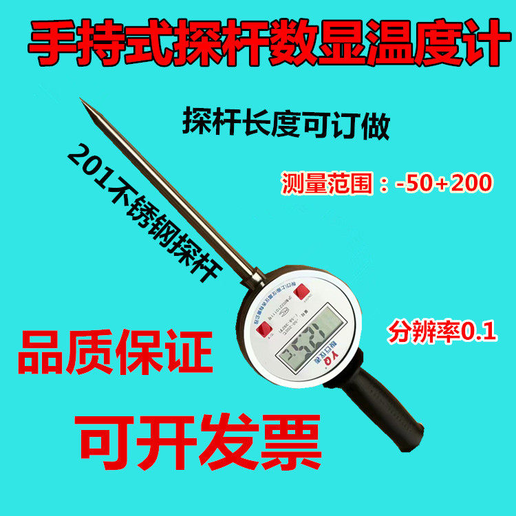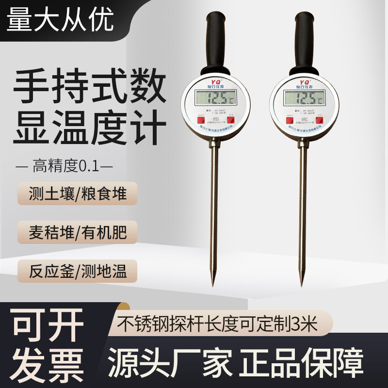 📚 加长探杆插入式数显温度计手持式测地温草垛酒糟粮食有机肥温度计