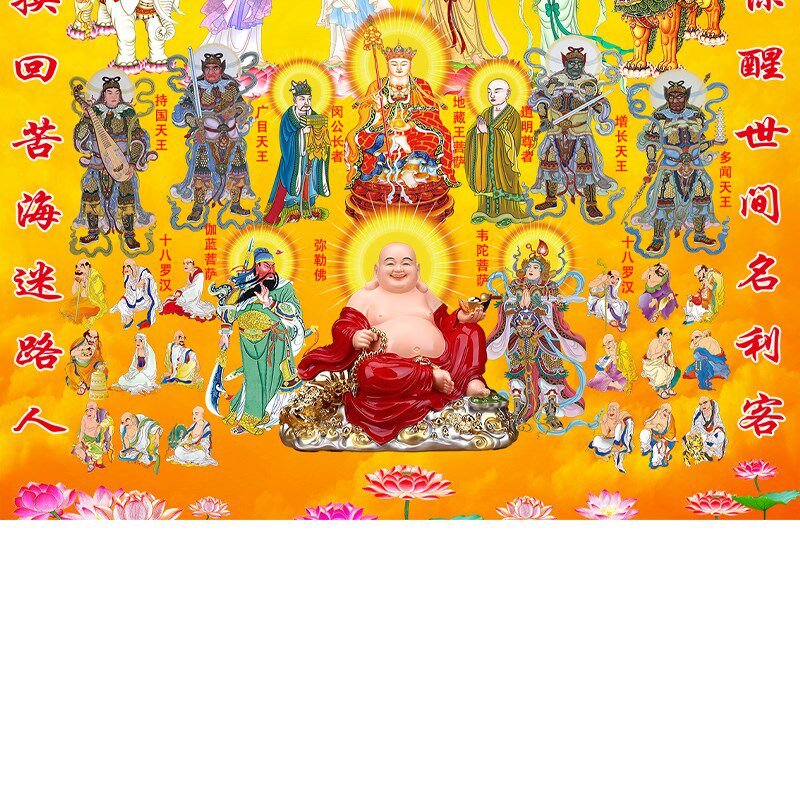 📚 全堂佛全佛图释迦摩尼佛地藏王普萨观音菩萨微喷画芯卷轴挂画