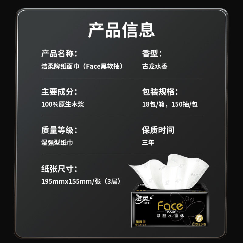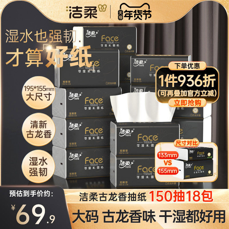 📚 洁柔抽纸古龙香水味3层擦手纸面巾纸擦脸150抽18包大码家用实惠装