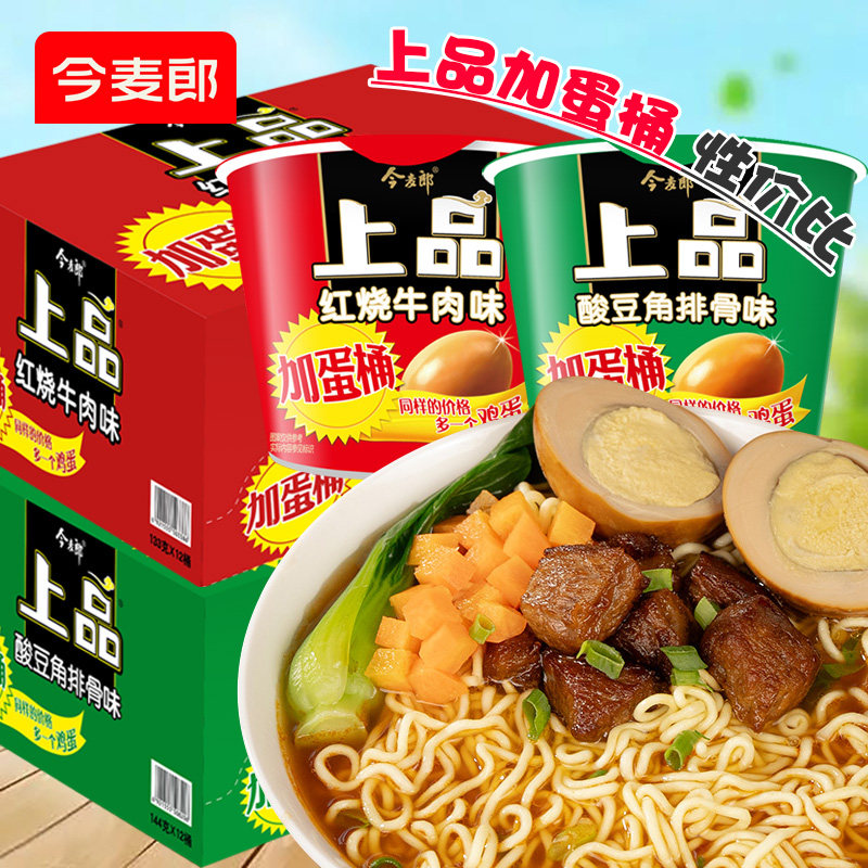 📚 今麦郎上品加蛋桶装方便面红烧牛肉面酸豆角排骨面速食泡面夜宵