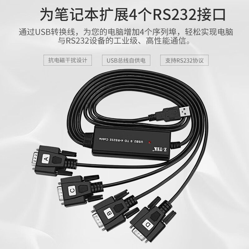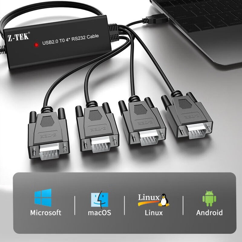 📚 Z-TEK力特 ZE552A 工业级 USB转4串口线 USB一拖四 RS232串口线