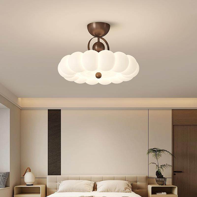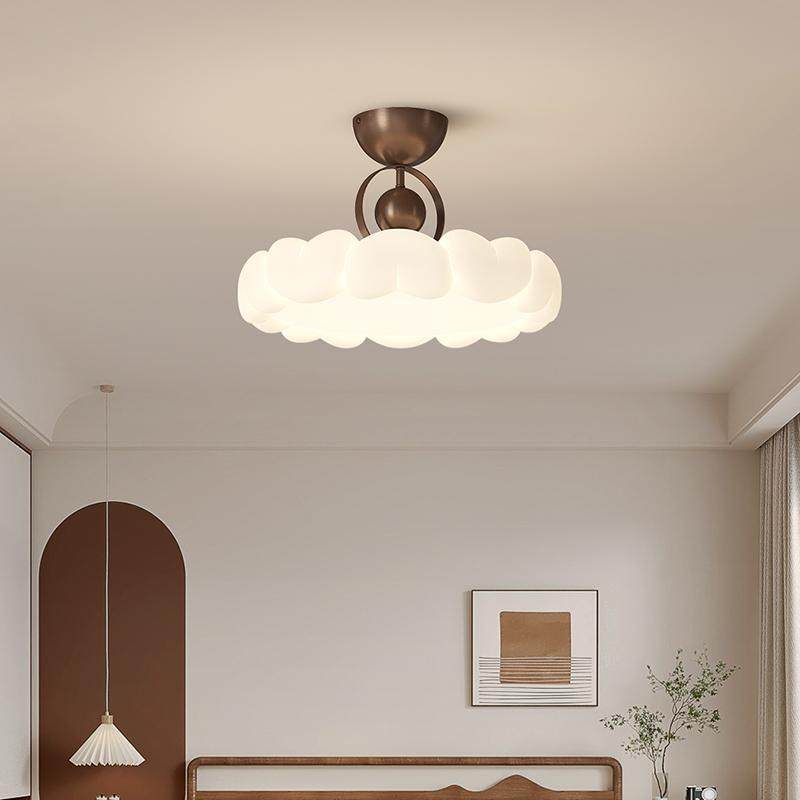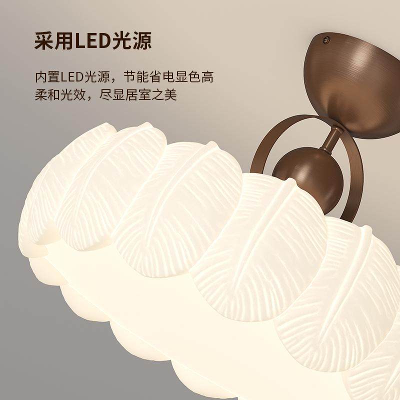 📚 法式轻奢中古风卧室吸顶灯全光谱复古胡桃木纹主卧房间LED花瓣灯