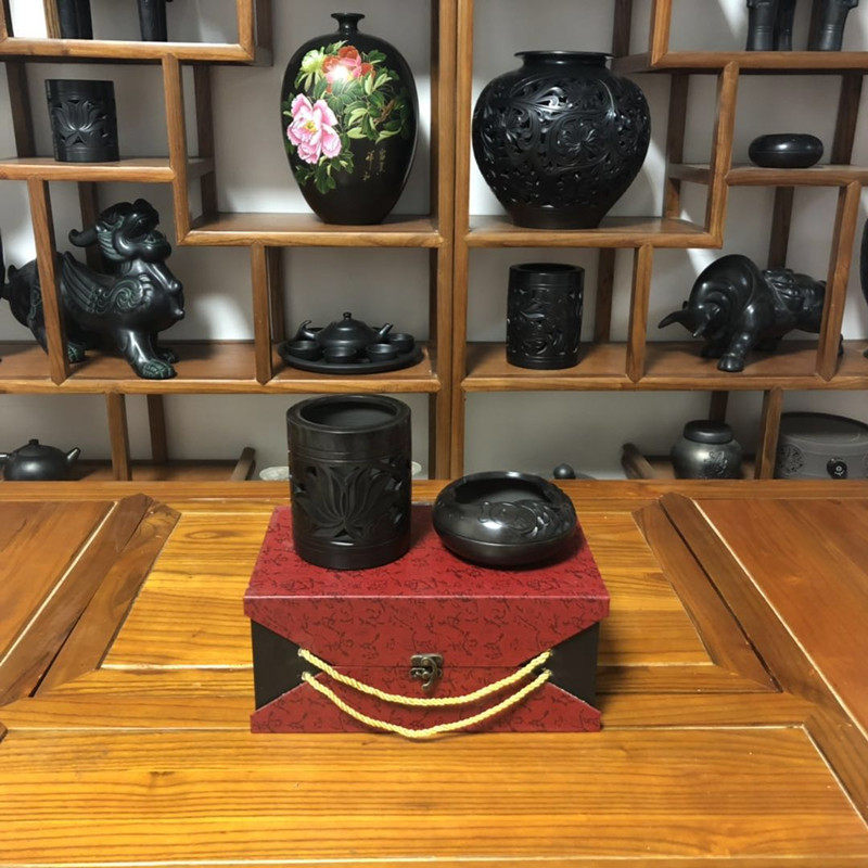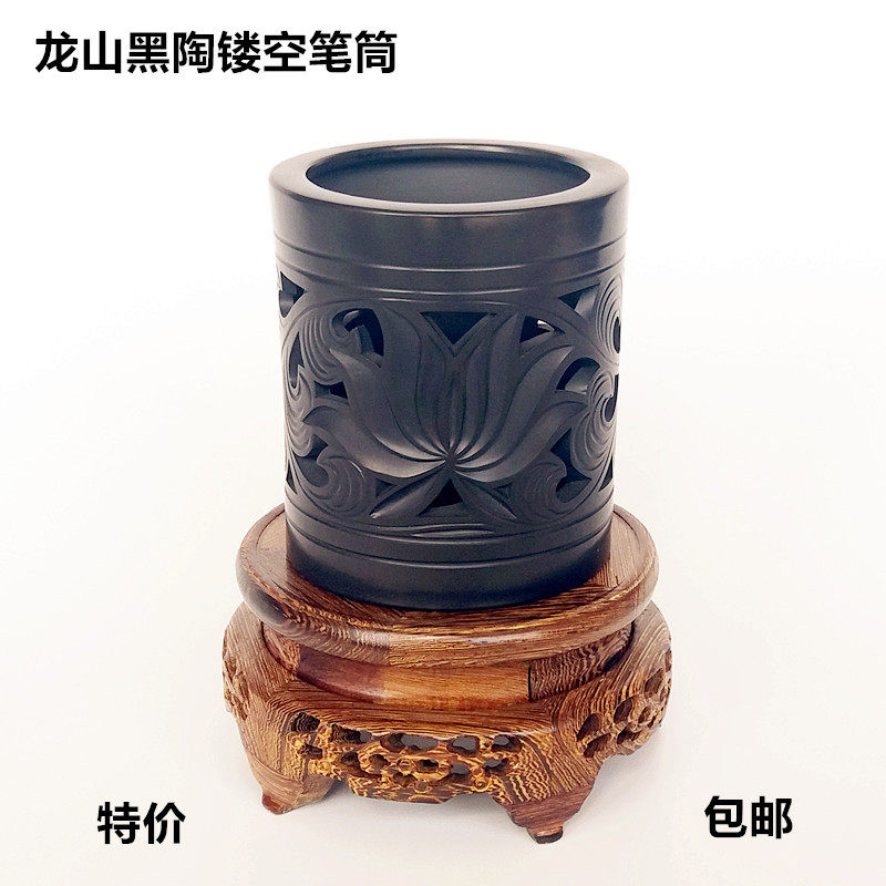 📚 龙山黑陶创意文具时尚圆形陶瓷精品笔筒毛笔圆珠笔铅笔多功能包邮
