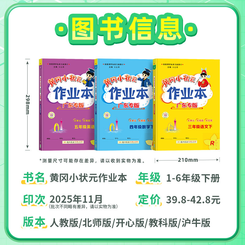 📚 广东专版】2026春黄冈小状元作业本一二年级三四五六年级上册下册语文数学英语人教版广州深圳珠海江门小学同步练习册寒假作业
