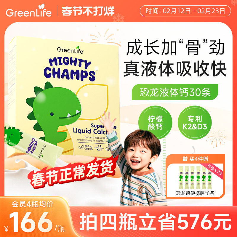 📚 Greenlife儿童恐龙液体钙成长婴幼儿赖氨酸柠檬补钙镁锌D3+K2进口