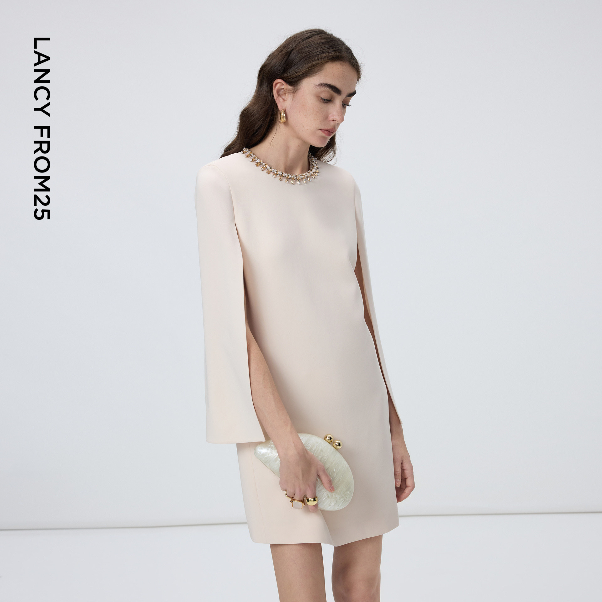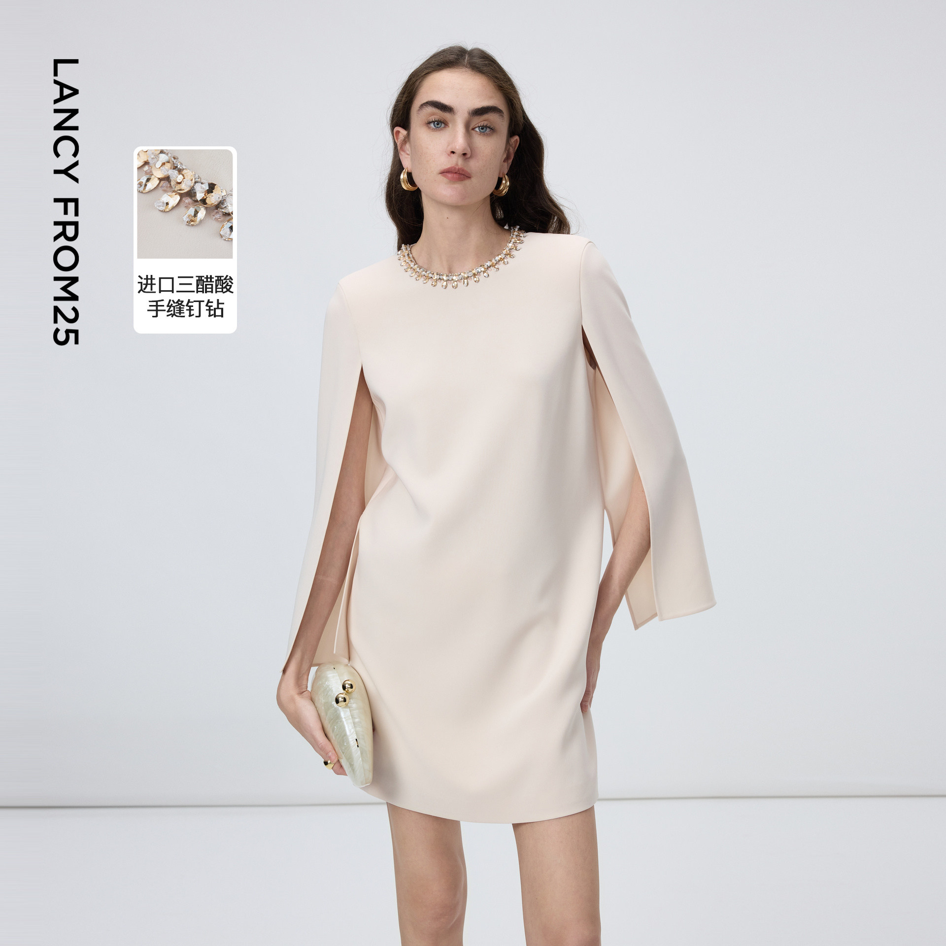 📚 朗姿三醋酸钉钻斗篷款设计感连衣裙优雅干练裙子2026年春季新款