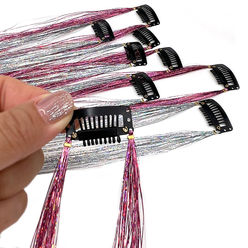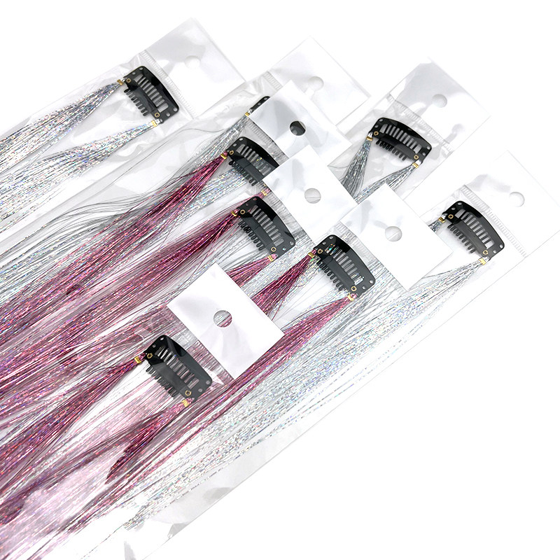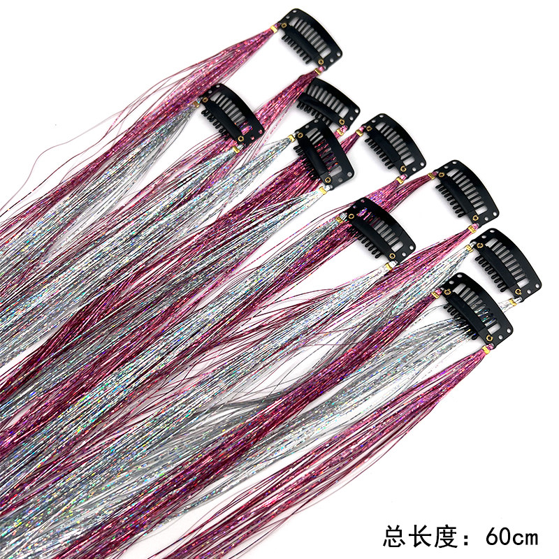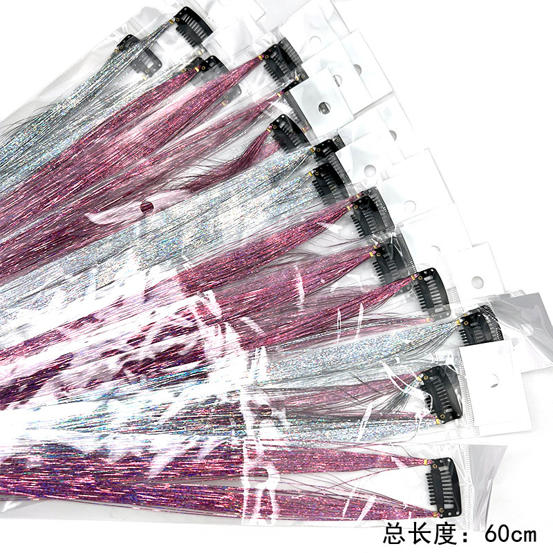 📚 闪亮银丝镭射丝挂耳染接发片炫彩造型网红节日舞台表演假发接发片