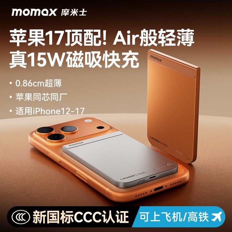 📚 MOMAX摩米士新款超薄磁吸充电宝MagSafe快充适用苹果QI2移动电源