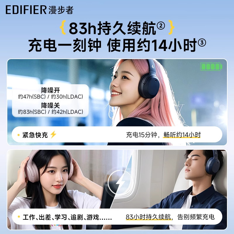 📚 Edifier/漫步者 W820NB三金标版蓝牙耳机头戴式降噪无线超长续航